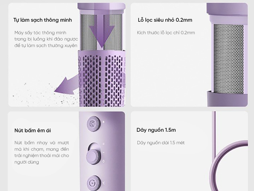 Tính năng tự làm sạch tích hợp trên máy sấy tóc HDL-1500 Pro, hỗ trợ loại bỏ bụi bẩn dễ dàng sau mỗi lần sử dụng, kéo dài tuổi thọ máy, đảm bảo vệ sinh tối ưu. Kết hợp công nghệ kiểm soát nhiệt độ thông minh 100 lần/giây, duy trì nhiệt độ ổn định, tránh tình trạng quá nhiệt gây hư tổn tóc, cho bạn yên tâm tận hưởng mái tóc khỏe đẹp mỗi ngày.