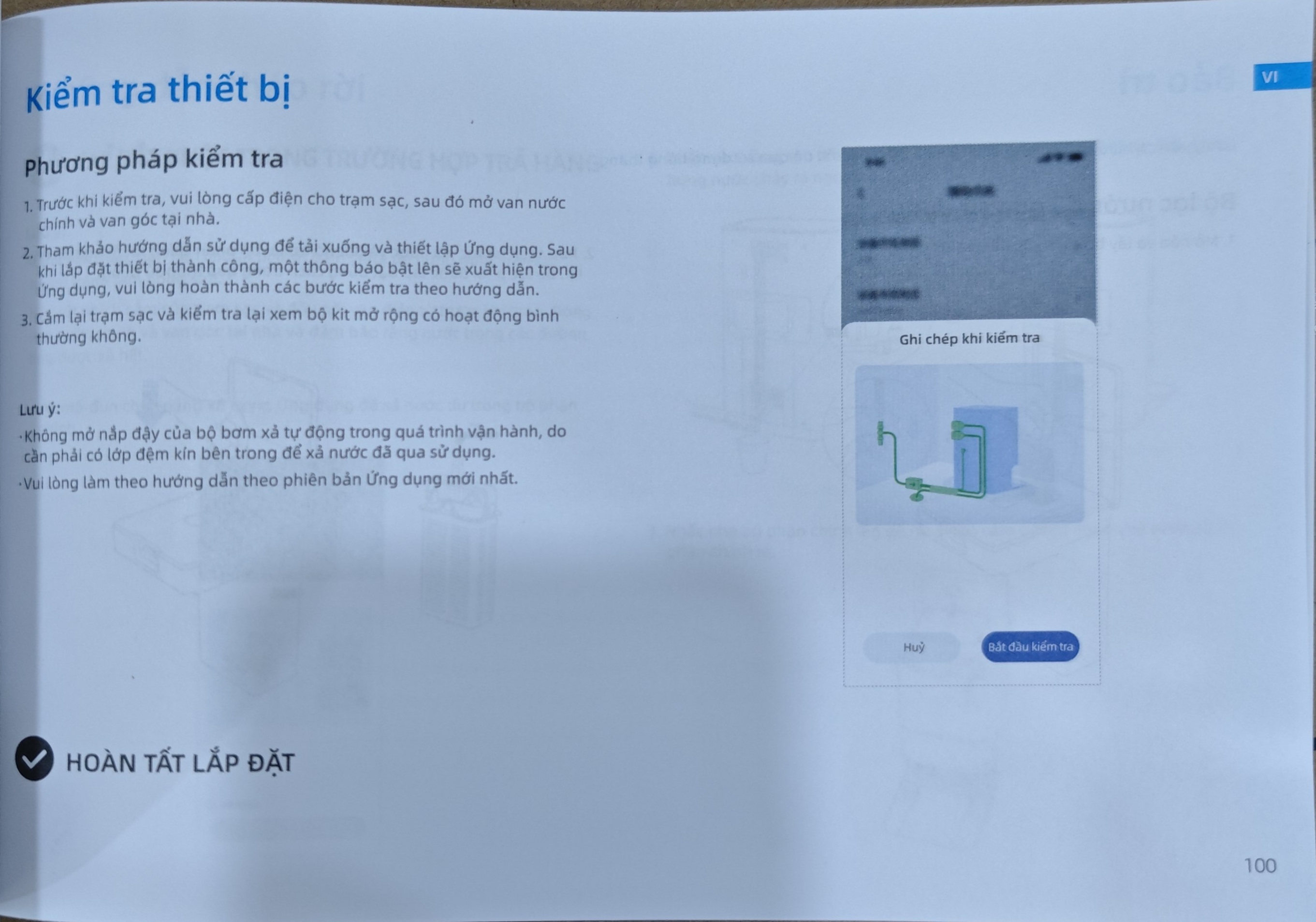- Trước khi kiểm tra, vui lòng cấp điện cho trạm sạc, sau đó mở van nước chính và van góc tại nhà.