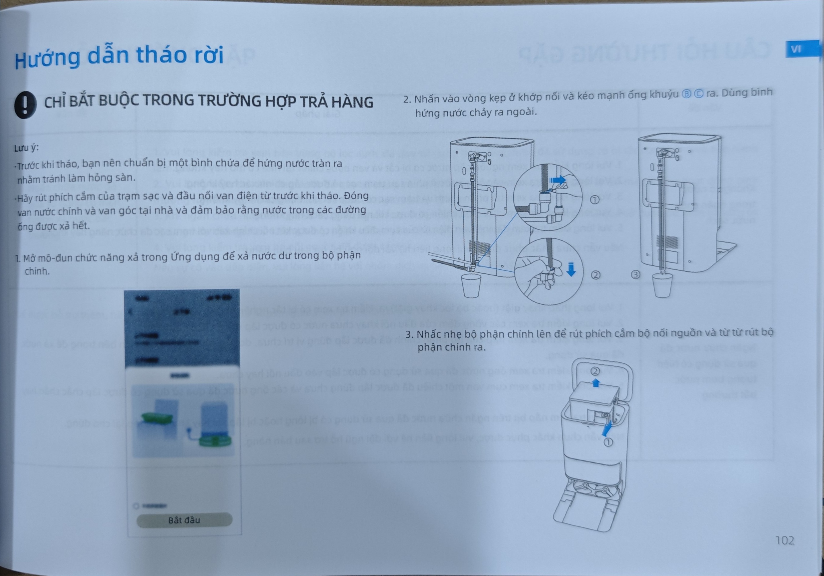 Hướng dẫn tháo rời CHỈ BẮT BUỘC TRONG TRƯỜNG HỢP TRẢ HÀNG Lưu ý: