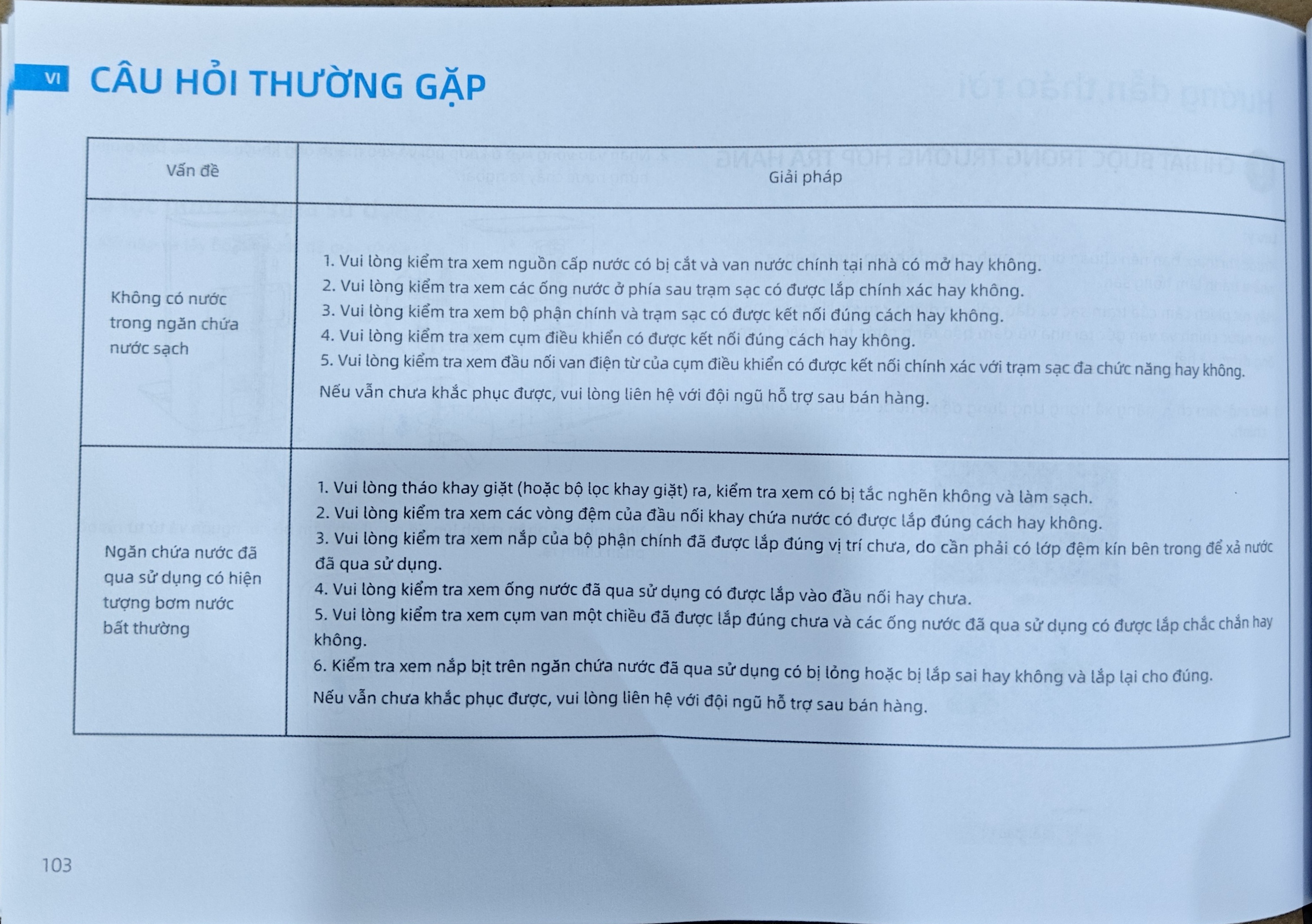 - Vui lòng kiểm tra xem cụm van một chiều đã được lắp đúng chưa và các ống nước đã qua sử dụng có được lắp chắc chắn hay không.