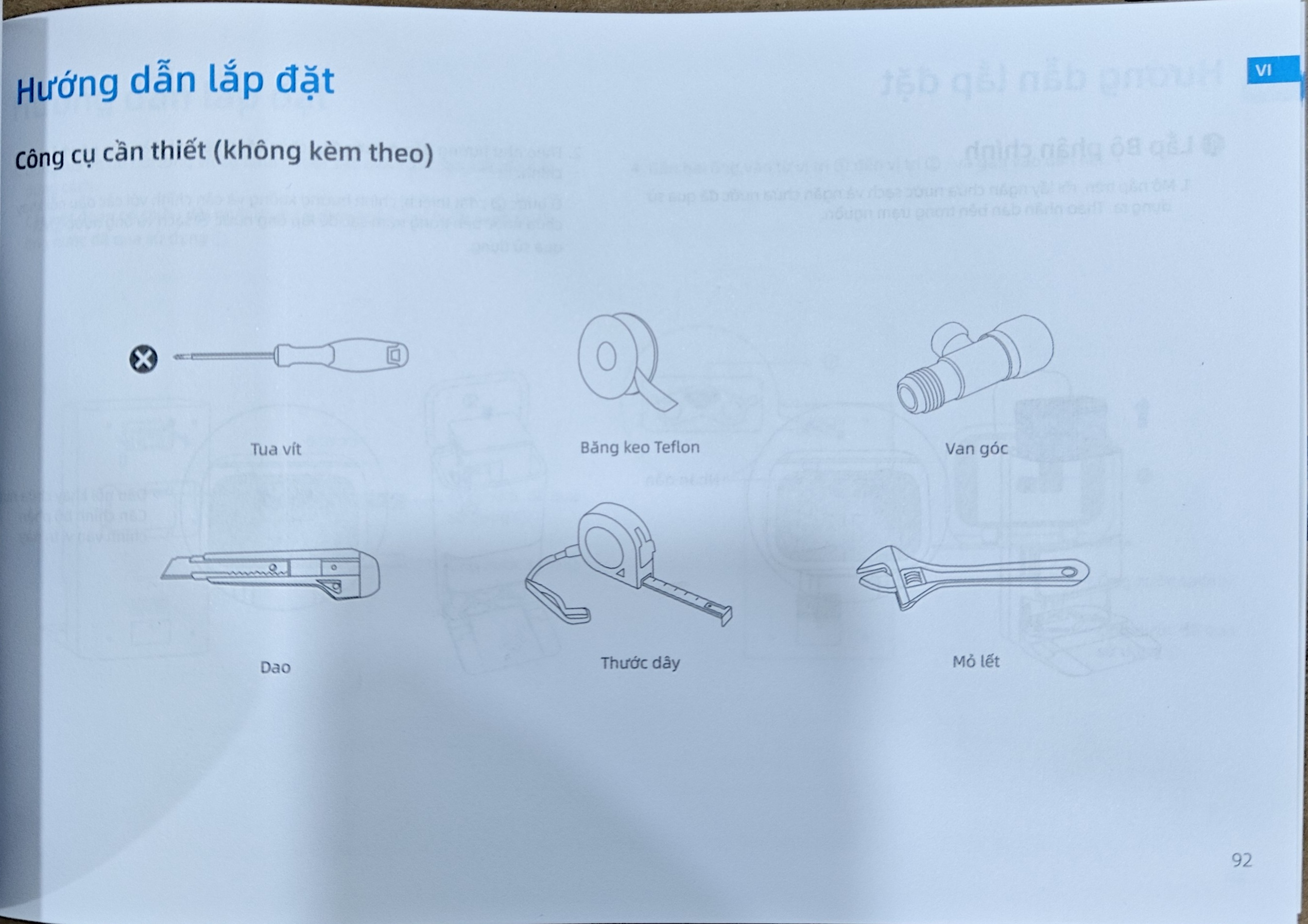 Hướng dẫn lắp đặt Công cụ cần thiết (Không kèm theo)