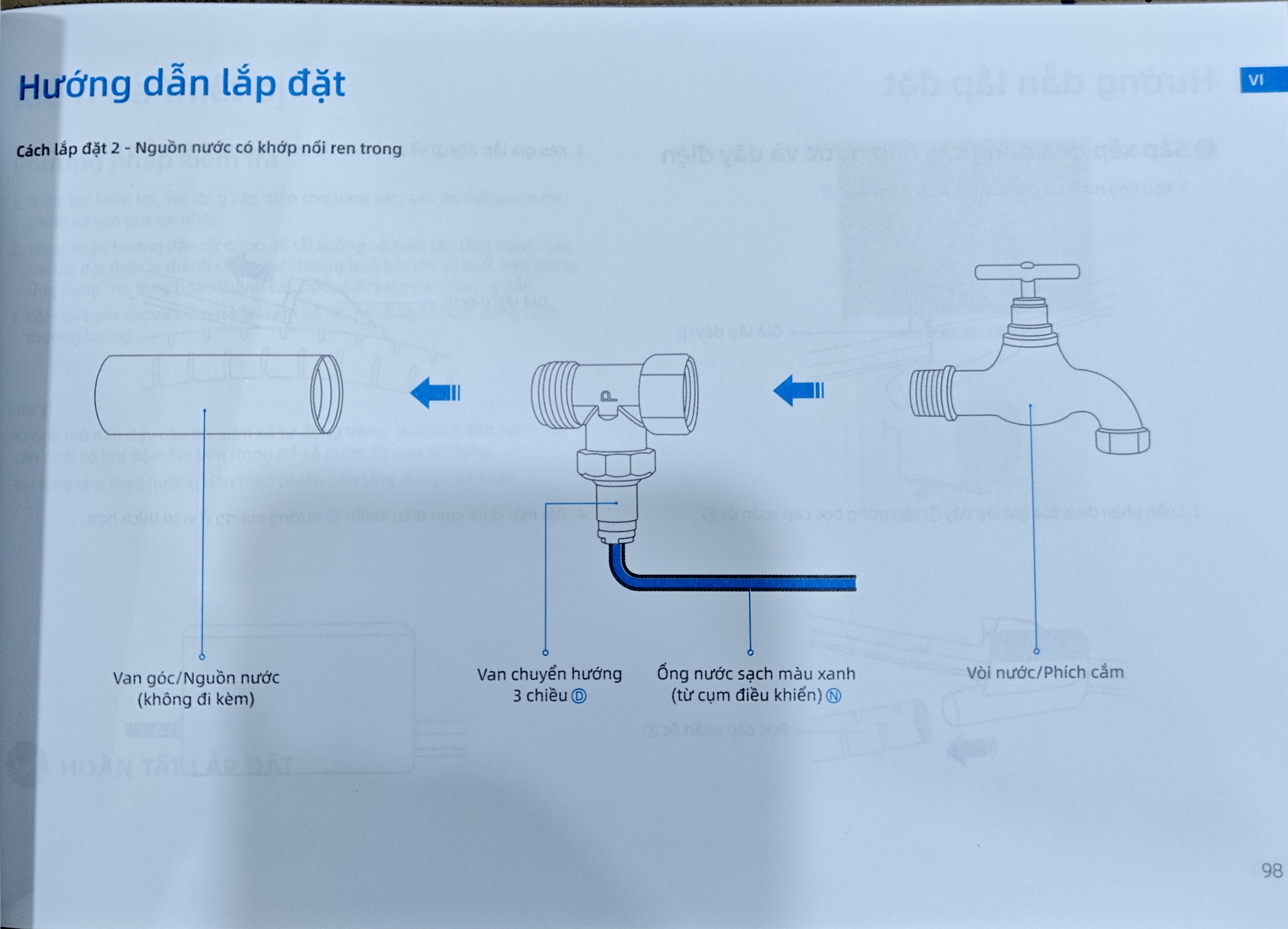 Trang 98: Cách lắp đặt 2 - Nguồn nước có khớp nối ren trong