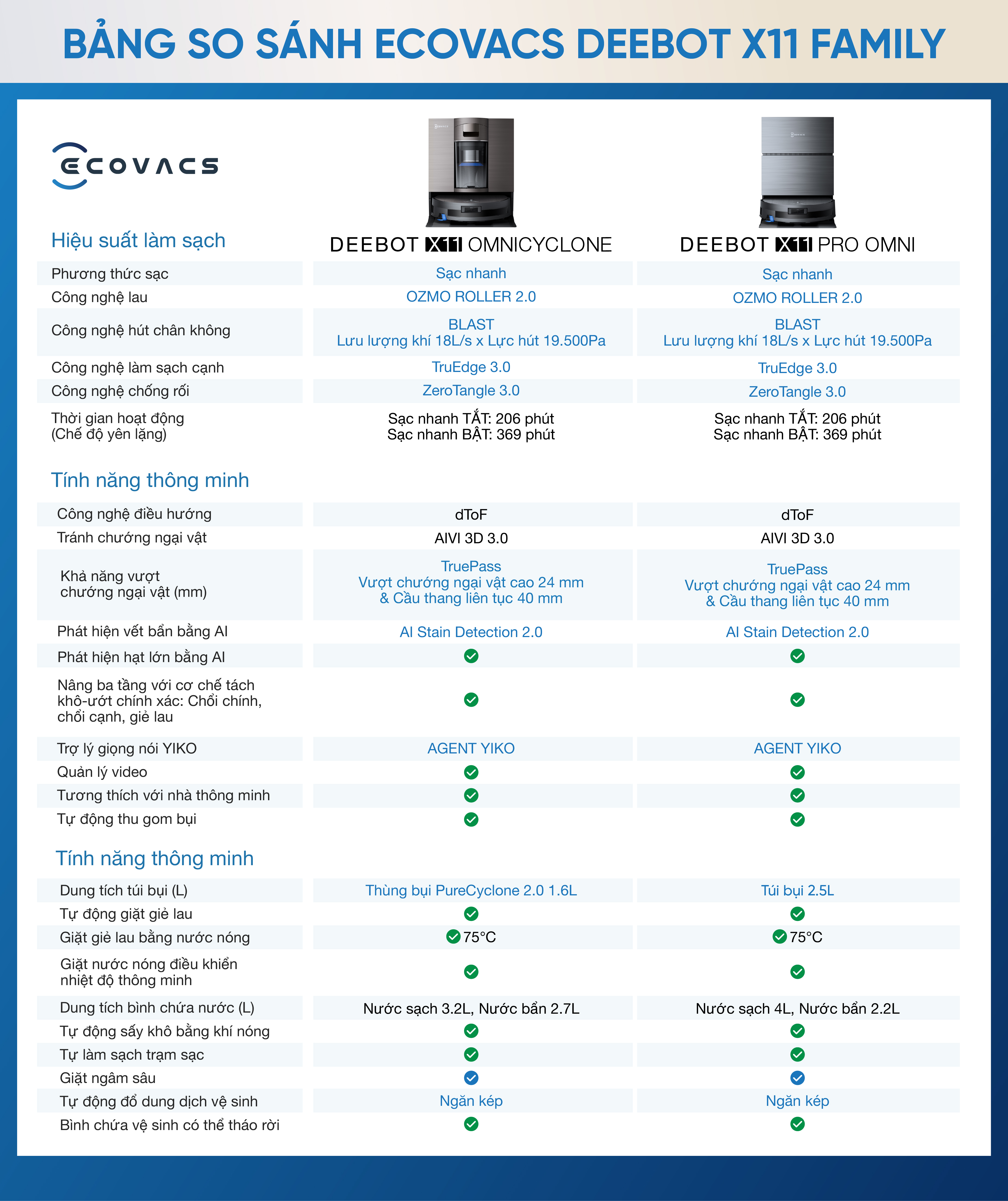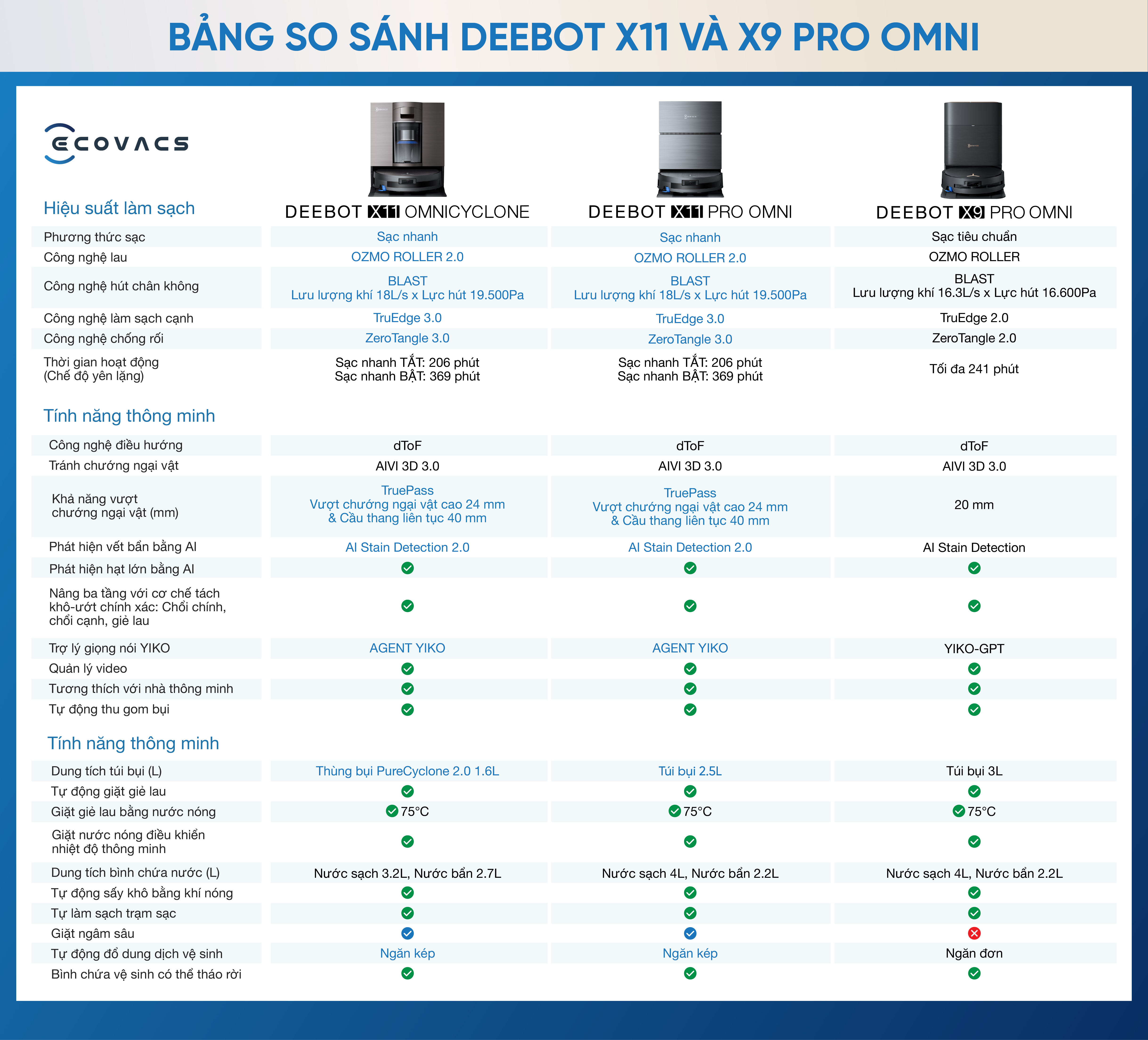 | Đặc Điểm | Series X (Ví dụ: X11 OmniCyclone) | Series T (Ví dụ: T30C) | Series N (Ví dụ: N30 PRO OMNI) |