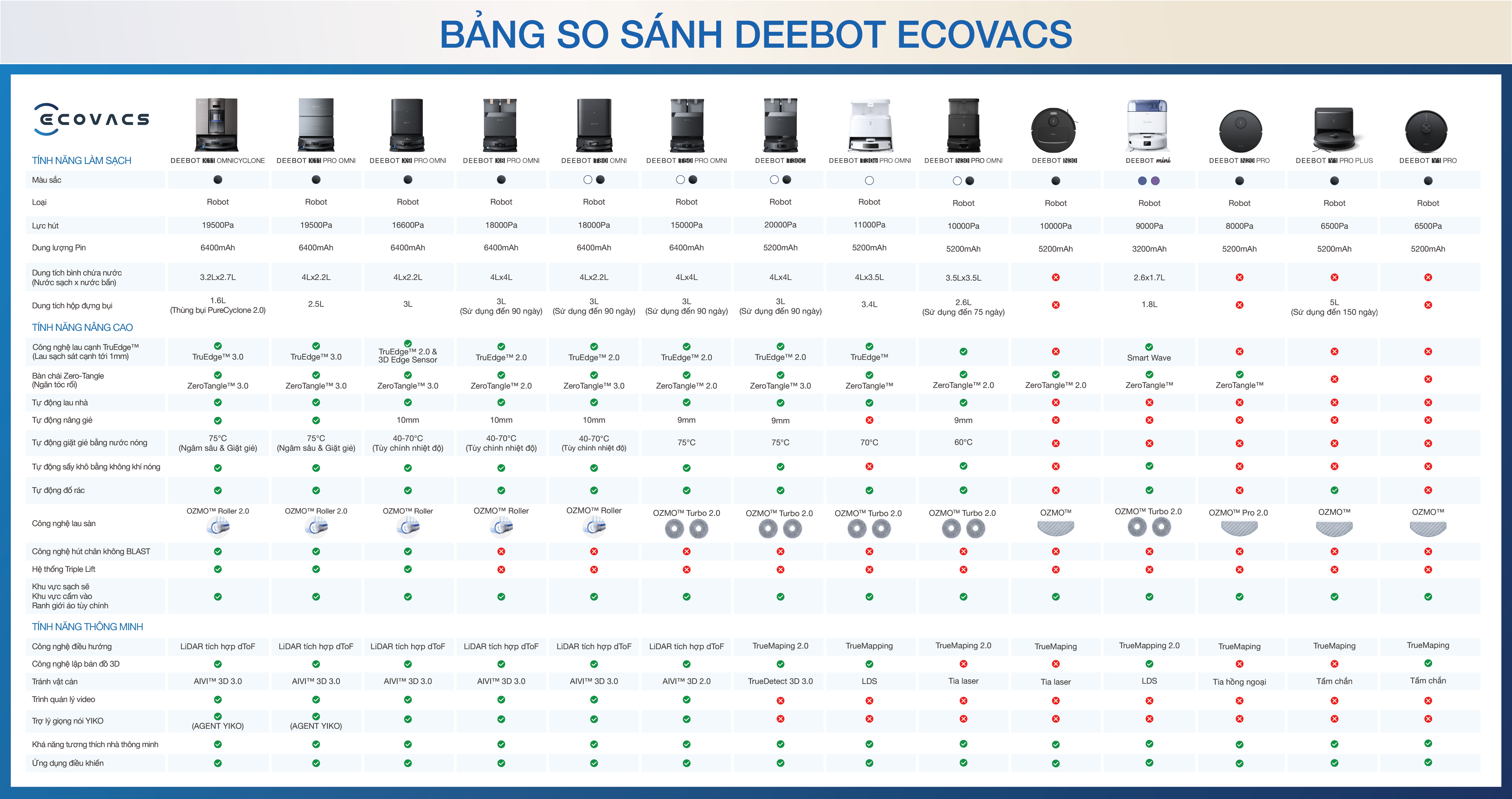 - So Sánh Các Mẫu Robot Hút Bụi Ecovacs Deebot: Hướng Dẫn Chọn Mua Năm 2025
