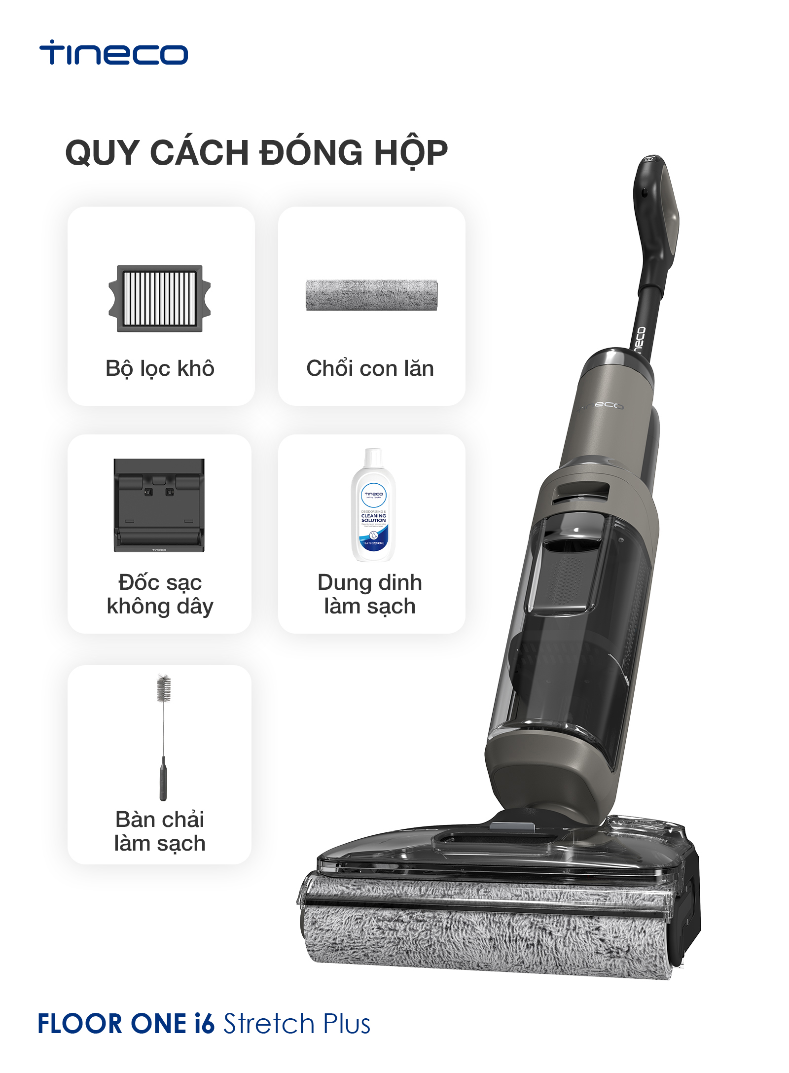 Nếu bạn đang tìm kiếm một thiết bị lau sàn tích hợp cả hút bụi – lau nhà – tự làm sạch, có khả năng xử lý chất bẩn khô ướt, tóc rối, và dễ dàng tiếp cận các góc khuất, thì Tineco Floor One i6 Stretch Plus chính là lựa chọn hoàn hảo.