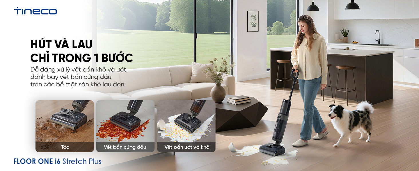 Trong thời đại công nghệ hiện đại, việc dọn dẹp nhà cửa không còn là gánh nặng với những sản phẩm thông minh như máy hút bụi lau sàn khô ướt Tineco Floor One i6 Stretch Plus. Với lực hút mạnh mẽ, thiết kế linh hoạt, cùng hàng loạt công nghệ tiên tiến, Tineco i6 không chỉ giúp bạn làm sạch bụi bẩn thông thường mà còn dễ dàng xử lý các vết bẩn cứng đầu, nước đổ, tóc rối hay lông thú cưng – tất cả chỉ trong một thiết bị duy nhất.