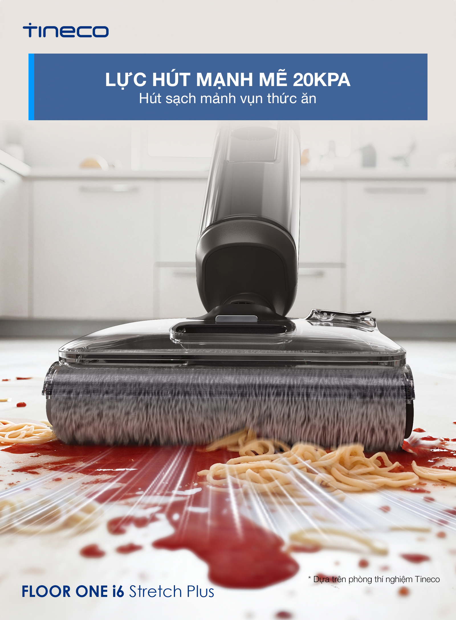 Máy được trang bị động cơ công suất 220W với lực hút mạnh lên tới 20.000Pa, cho khả năng hút bụi – lau nhà – làm sạch chất lỏng cực kỳ hiệu quả. Dù là bụi mịn, mảnh vụn nhỏ hay những vết bẩn đã khô lâu ngày, Tineco i6 Stretch Plus đều có thể xử lý nhanh chóng.