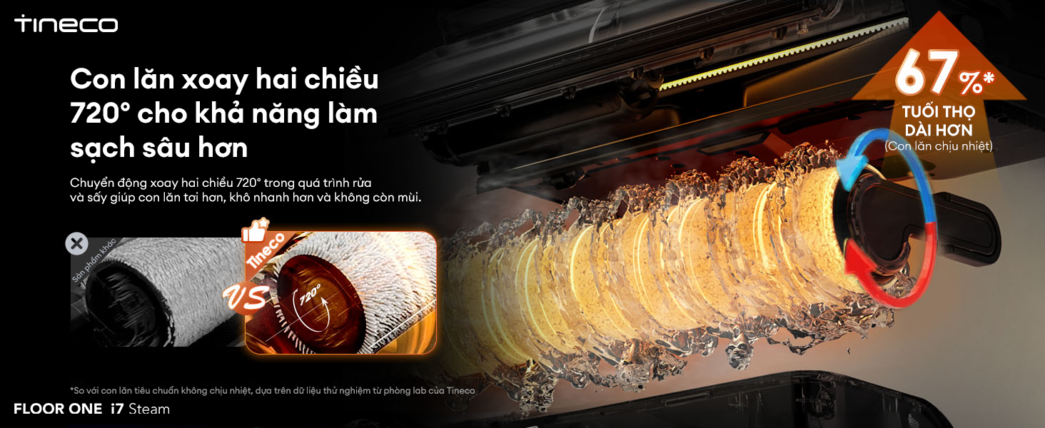 So với con lăn tiêu chuẩn không chịu nhiệt, dựa trên dữ liệu thử nghiệm từ phòng thí nghiệm của Tineco.