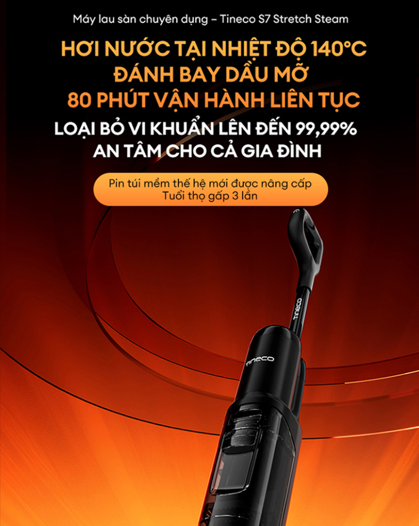 Trong thời đại bận rộn, một thiết bị vừa hút bụi, vừa lau sàn, vừa khử khuẩn bằng hơi nước sẽ giúp tiết kiệm tối đa thời gian và công sức cho người nội trợ. Máy hút bụi lau sàn khô ướt Tineco FLOOR ONE S7 Stretch Steam chính là sự lựa chọn hoàn hảo. Với công nghệ hơi nước HyperSteam 140℃ tiên tiến, lực hút mạnh mẽ và hàng loạt tính năng thông minh, sản phẩm mang đến trải nghiệm dọn dẹp hoàn toàn mới, sạch sâu – an toàn – tiết kiệm.