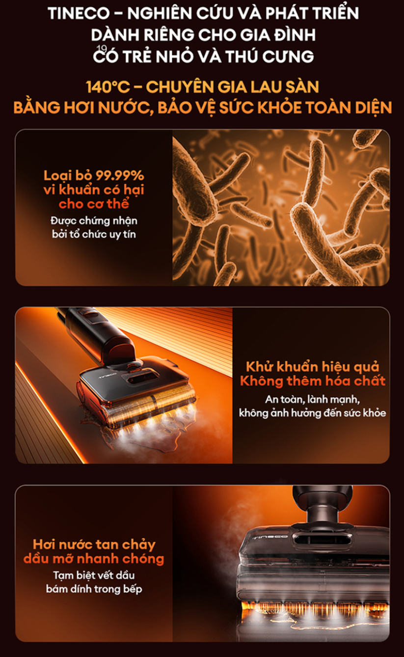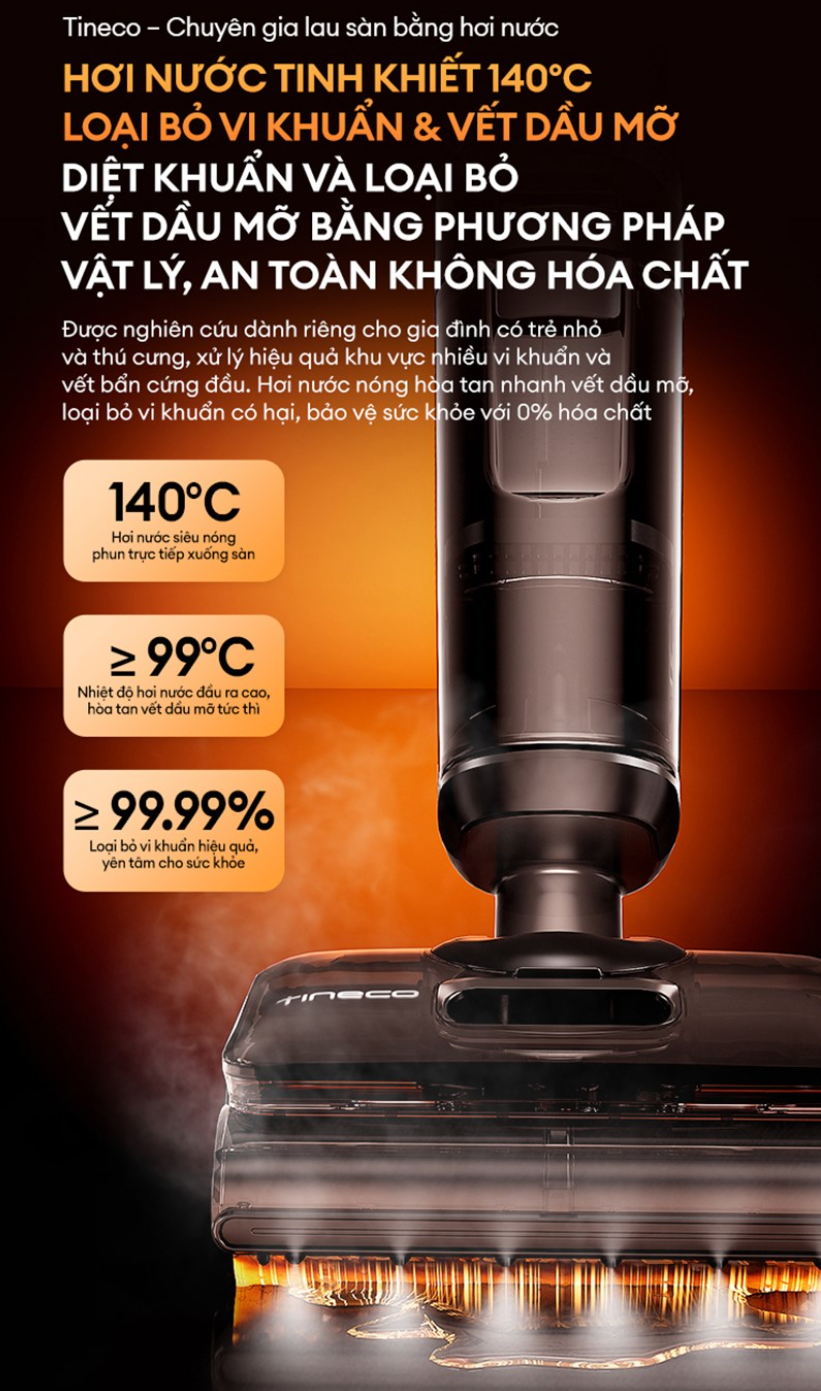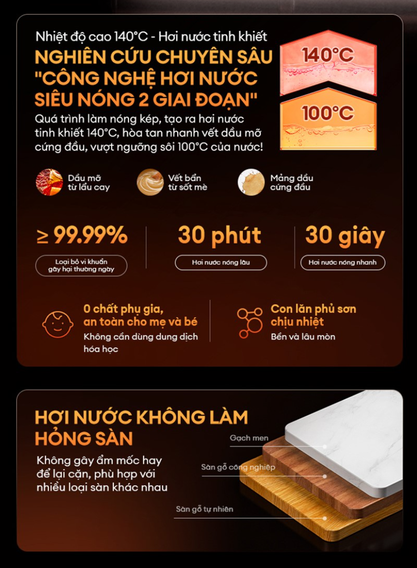 • ✔ Công nghệ hơi nước 140℃ vượt trội, tiêu diệt vi khuẩn & vết bẩn cứng đầu.