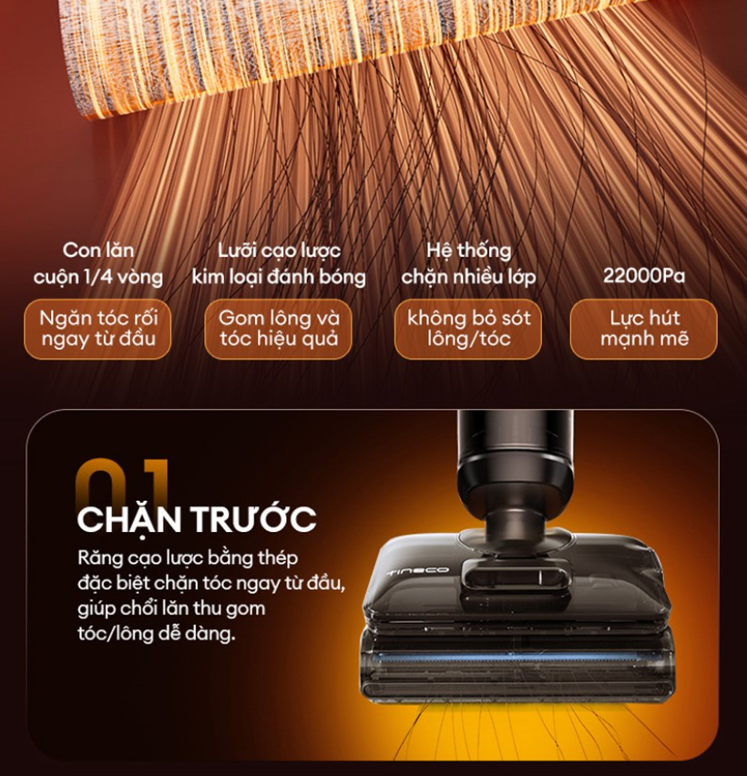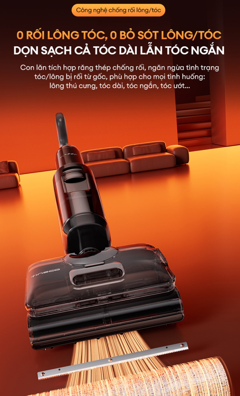 • Ngăn chặn hiệu quả việc tóc, lông thú quấn vào chổi lăn, giúp máy vận hành trơn tru, bền bỉ.