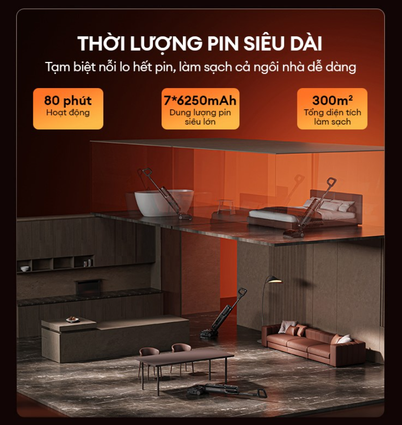 • ✔ Làm sạch toàn diện: hút bụi – lau sàn – khử khuẩn bằng hơi nước.
