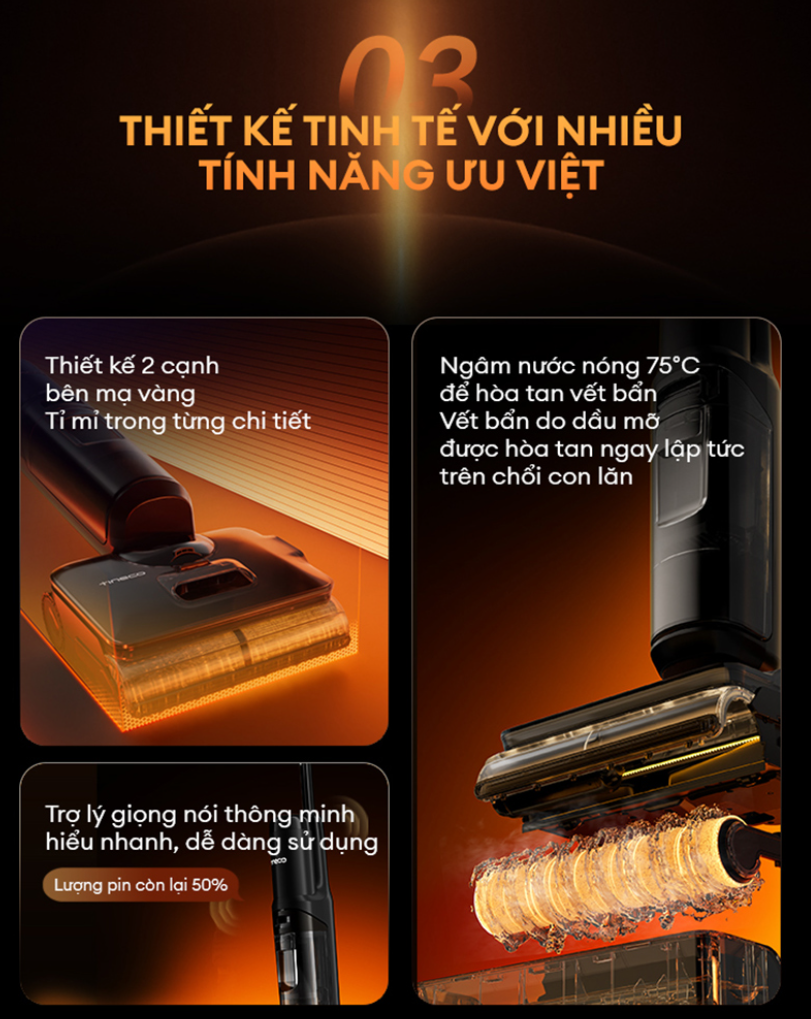 • Tự rửa chổi lăn bằng nước nóng 85℃, loại bỏ hoàn toàn cặn bẩn.