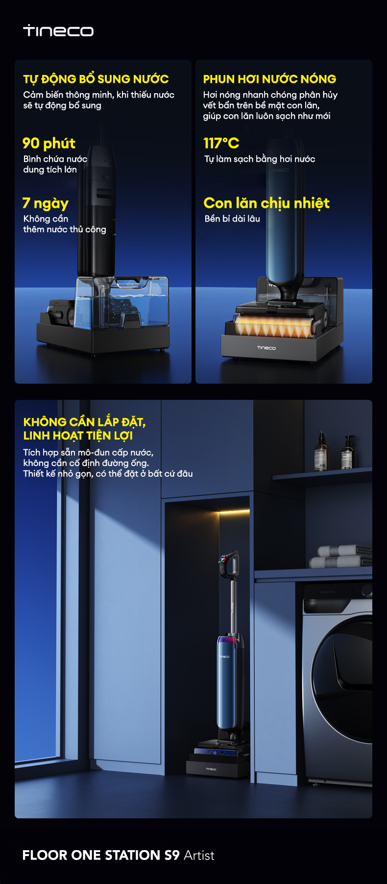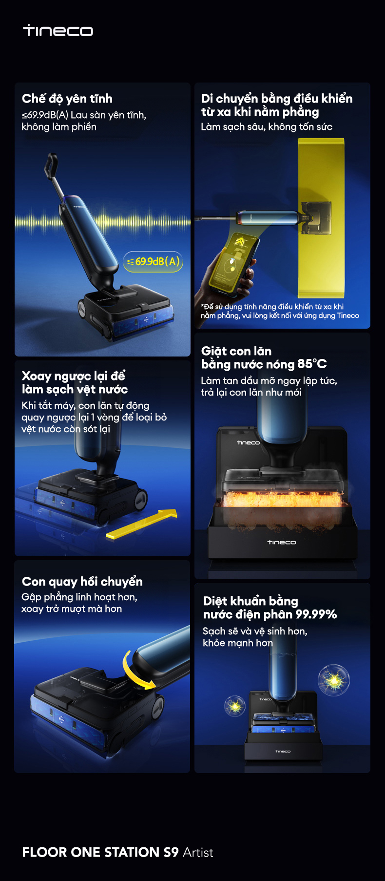 Trong thời đại nhà thông minh lên ngôi, việc lựa chọn một thiết bị làm sạch đa năng, mạnh mẽ và tiện lợi là ưu tiên hàng đầu của nhiều gia đình. Máy hút bụi lau sàn khô ướt Tineco FLOOR ONE STATION S9 Artist chính là giải pháp hoàn hảo, tích hợp hàng loạt công nghệ tiên tiến giúp tối ưu hiệu quả dọn dẹp, tiết kiệm thời gian và nâng tầm trải nghiệm sống.