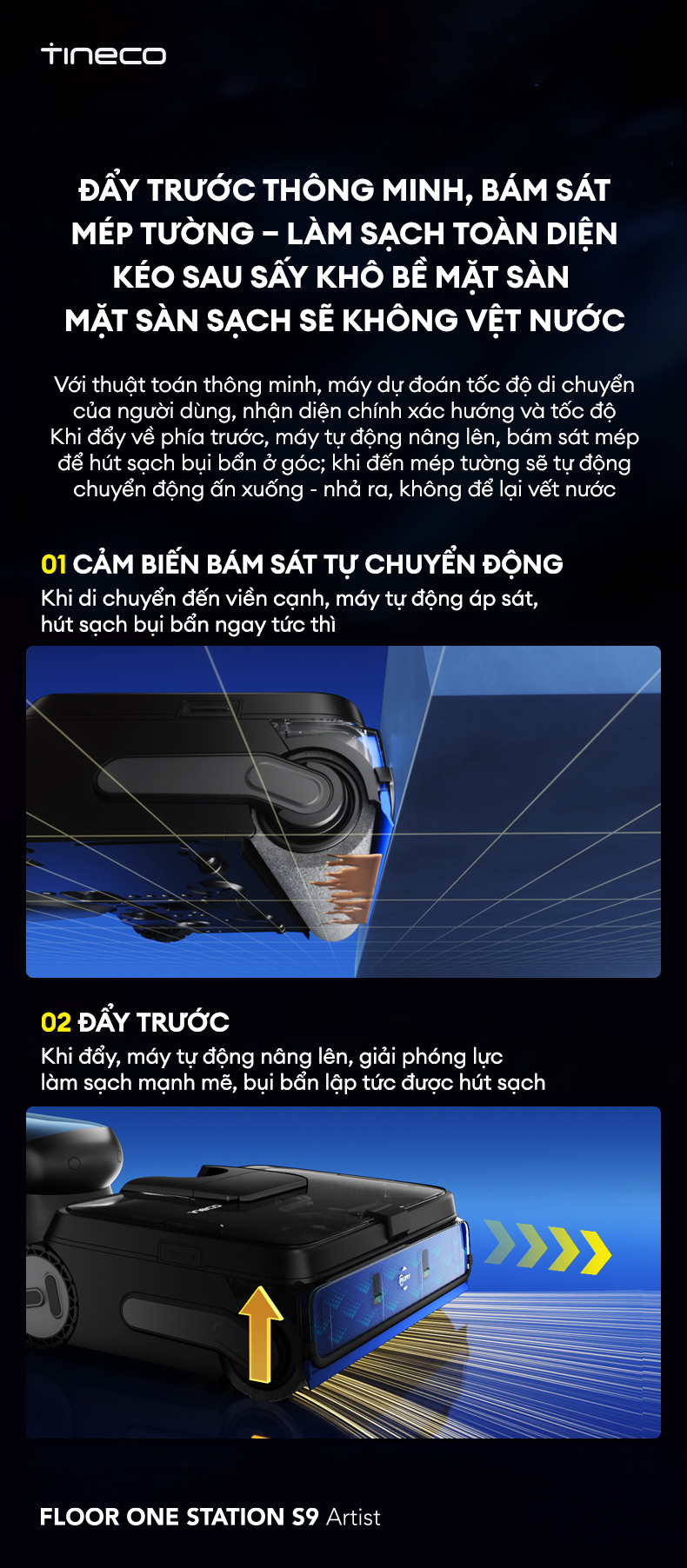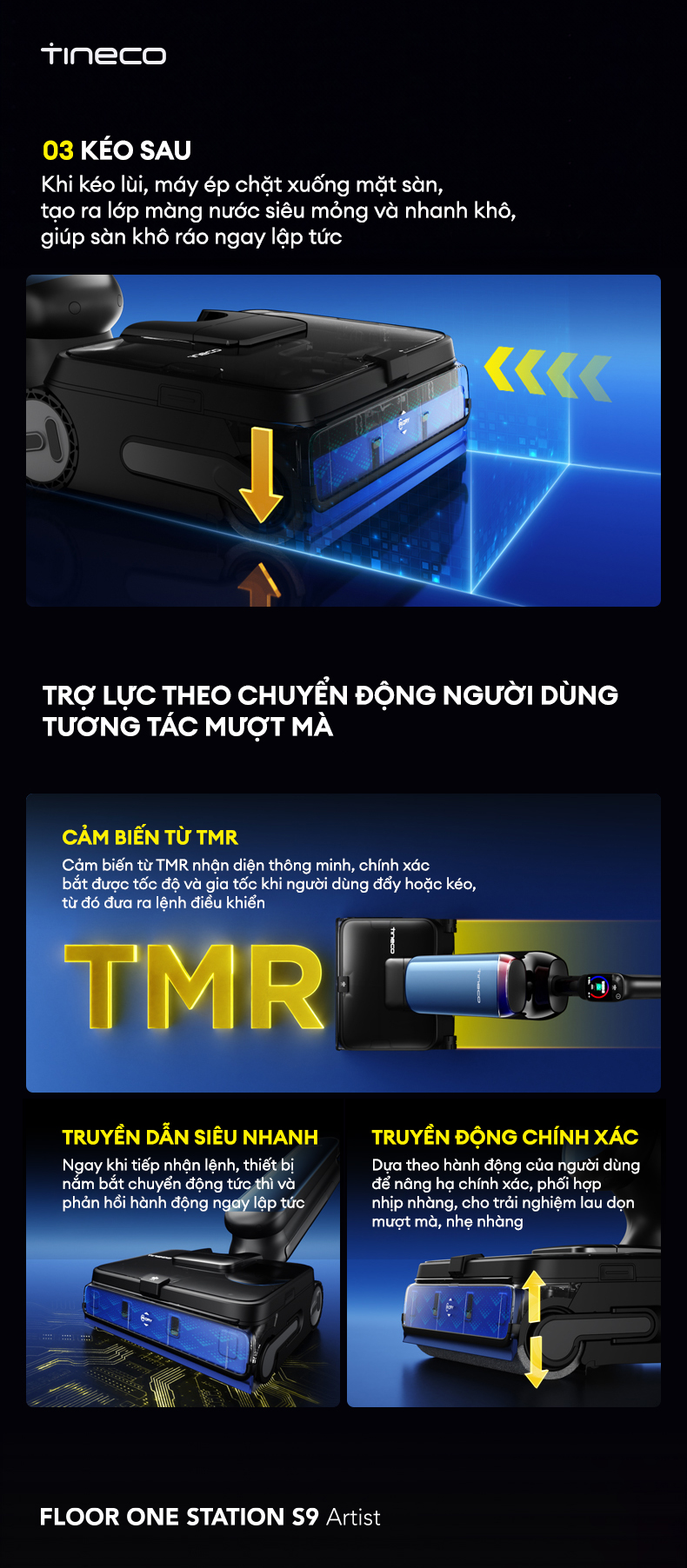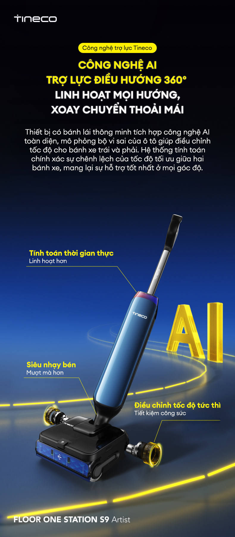 | Công nghệ Tineco SmoothDrive: AI trợ lực điều hướng và làm sạch 360° | |