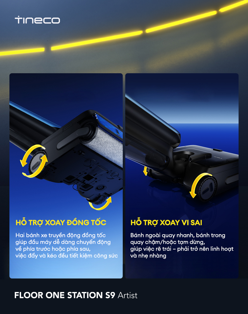 Tineco FLOOR ONE STATION S9 Artist là dòng máy hút bụi lau sàn cao cấp với khả năng hút – lau – làm sạch tự động trong một thiết bị duy nhất. Sở hữu lực hút mạnh mẽ lên đến 22.000Pa, kết hợp công nghệ HydroBurst phun nước áp suất cao, máy dễ dàng xử lý mọi loại vết bẩn cứng đầu chỉ trong một lần di chuyển.