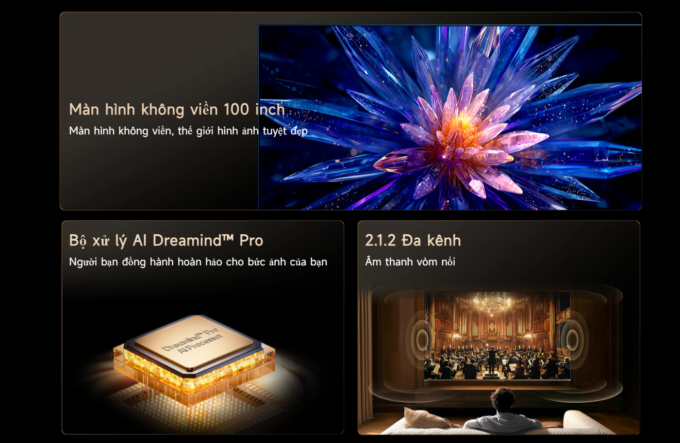 Thiết kế màn hình không viền 100 inch đẳng cấp
