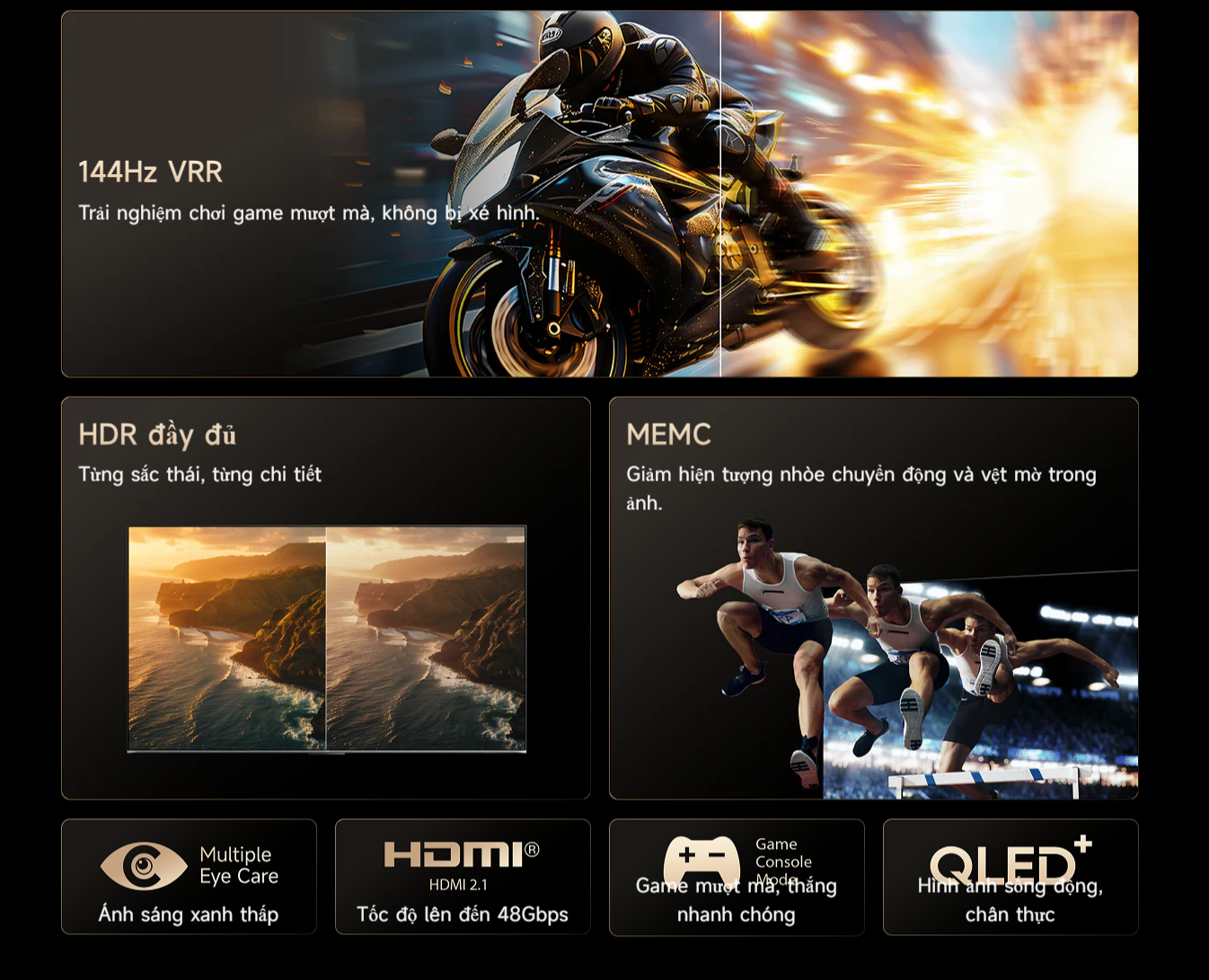 Trải nghiệm chơi game mượt mà với 144Hz VRR và HDMI 2.1