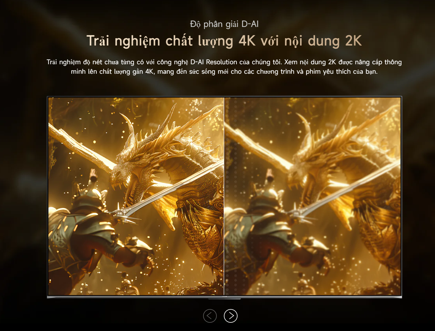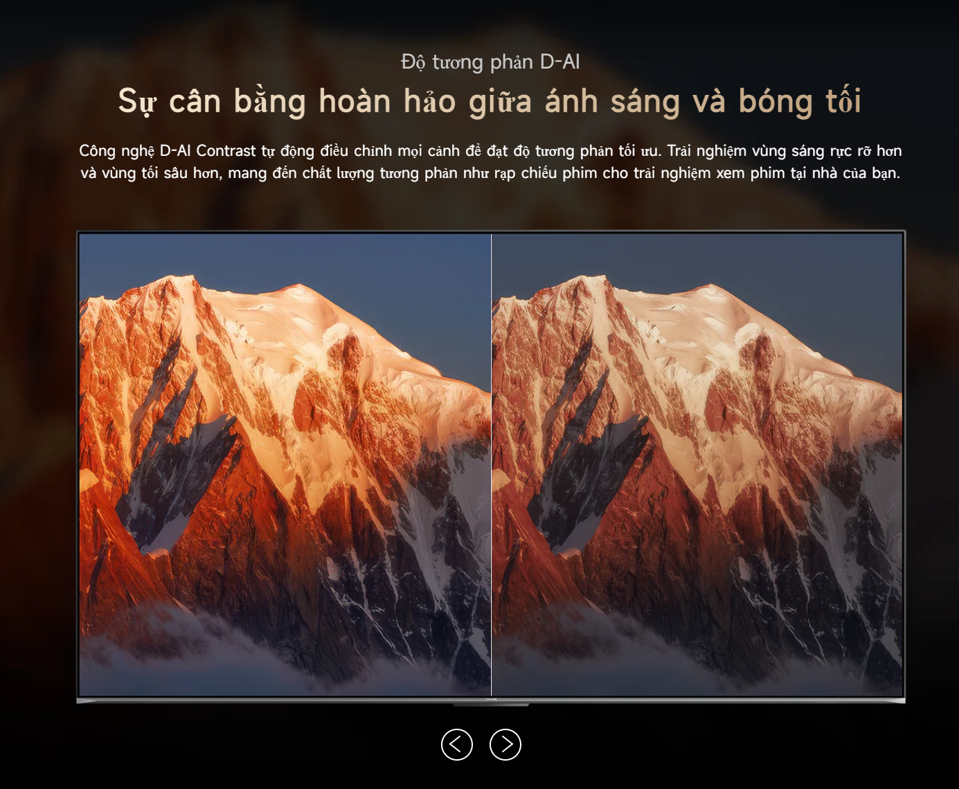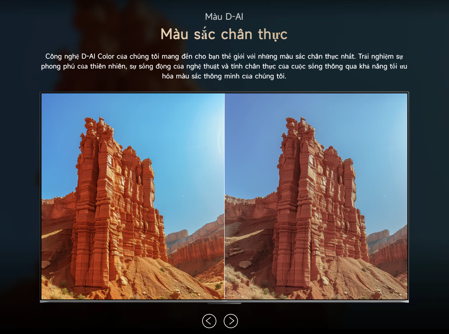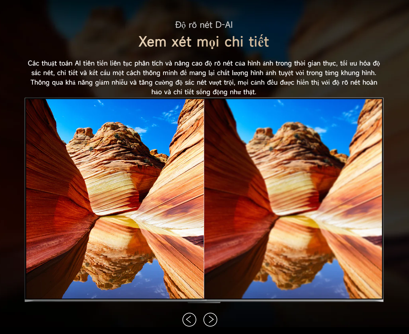 Bộ xử lý AI Dreamind Pro đóng vai trò trung tâm trong việc nâng cao chất lượng hình ảnh. Công nghệ này phân tích và xử lý từng khung hình theo thời gian thực, giúp cải thiện độ sắc nét, tối ưu màu sắc, tăng cường độ tương phản và giảm nhiễu hiệu quả. Các công nghệ D-AI như D-AI Resolution, D-AI Color, D-AI Contrast và D-AI Scene mang lại trải nghiệm hình ảnh gần với chuẩn điện ảnh.