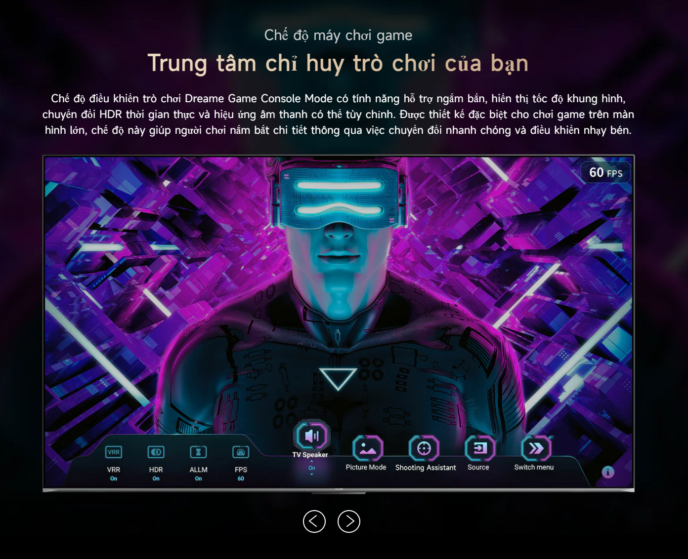 Dreame Q100 100Q100 được tối ưu cho gaming với VRR giúp loại bỏ hiện tượng xé hình, ALLM giảm độ trễ xuống mức thấp và HDMI 2.1 hỗ trợ băng thông lên đến 48Gbps. Nhờ đó, người chơi có thể tận hưởng các tựa game 4K ở tốc độ cao với hình ảnh mượt mà và phản hồi nhanh.