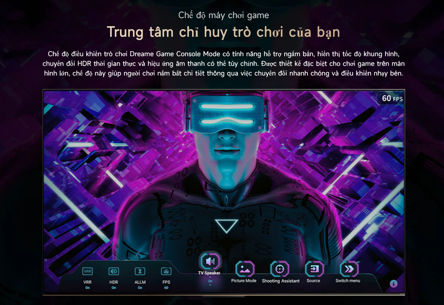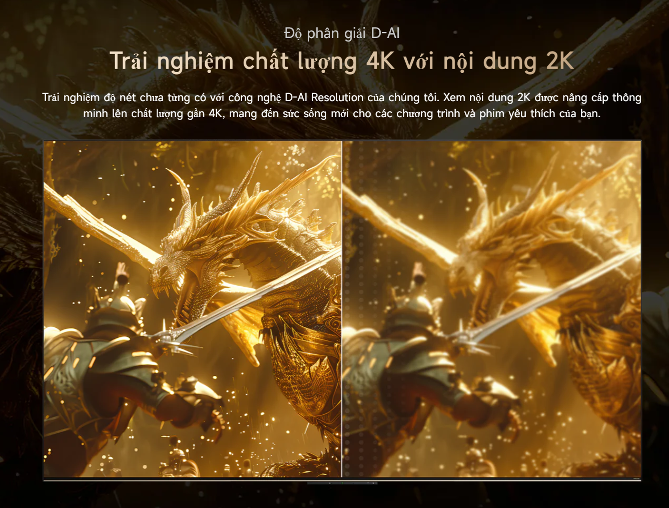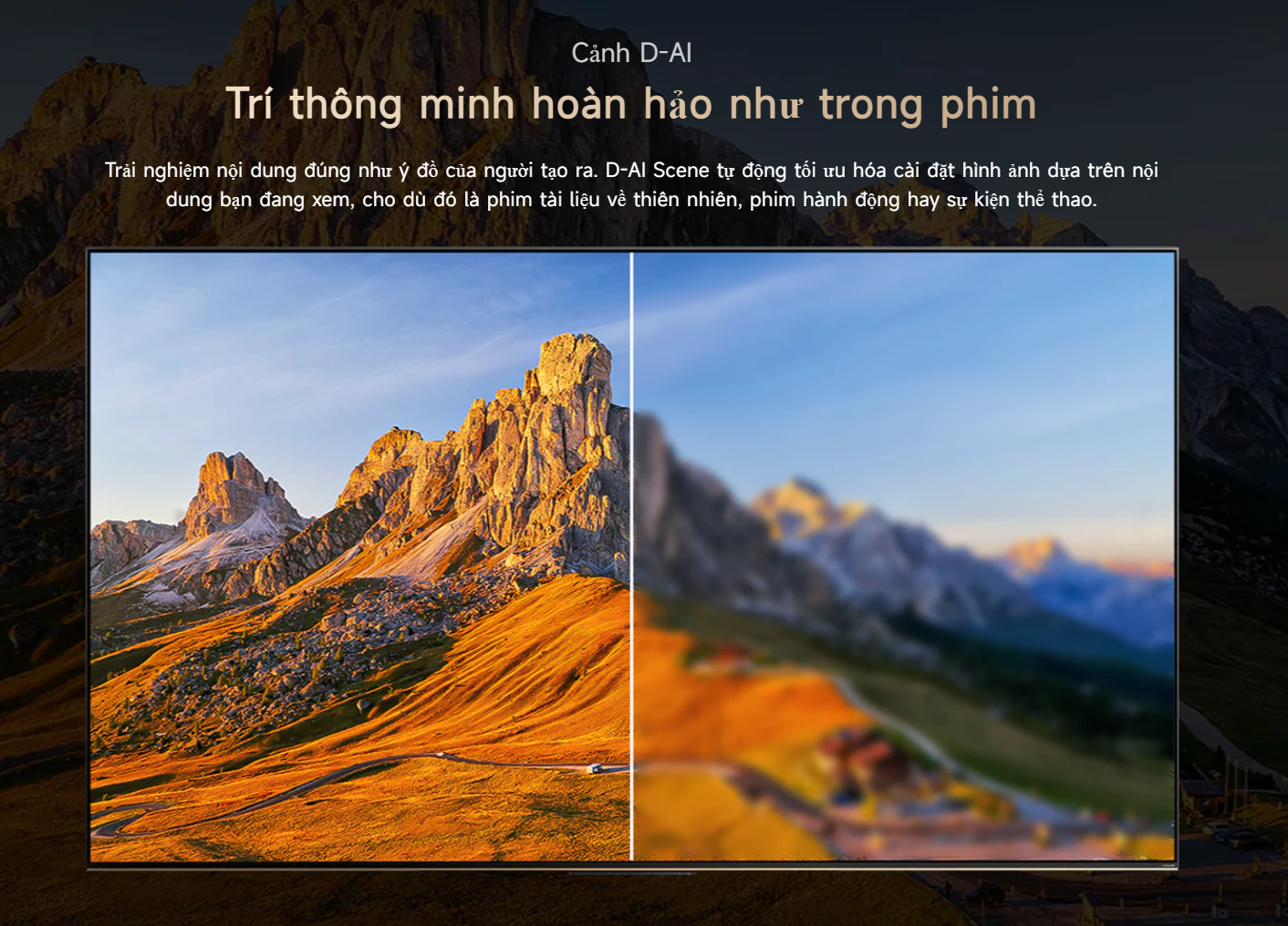 Bộ xử lý AI Dreamind Pro đóng vai trò quan trọng trong việc tối ưu chất lượng hiển thị. Công nghệ này giúp nâng cấp nội dung từ 2K lên gần 4K, đồng thời tối ưu màu sắc, độ tương phản và độ sắc nét theo thời gian thực. Nhờ các công nghệ D AI, hình ảnh luôn đạt độ chi tiết cao và tự nhiên.