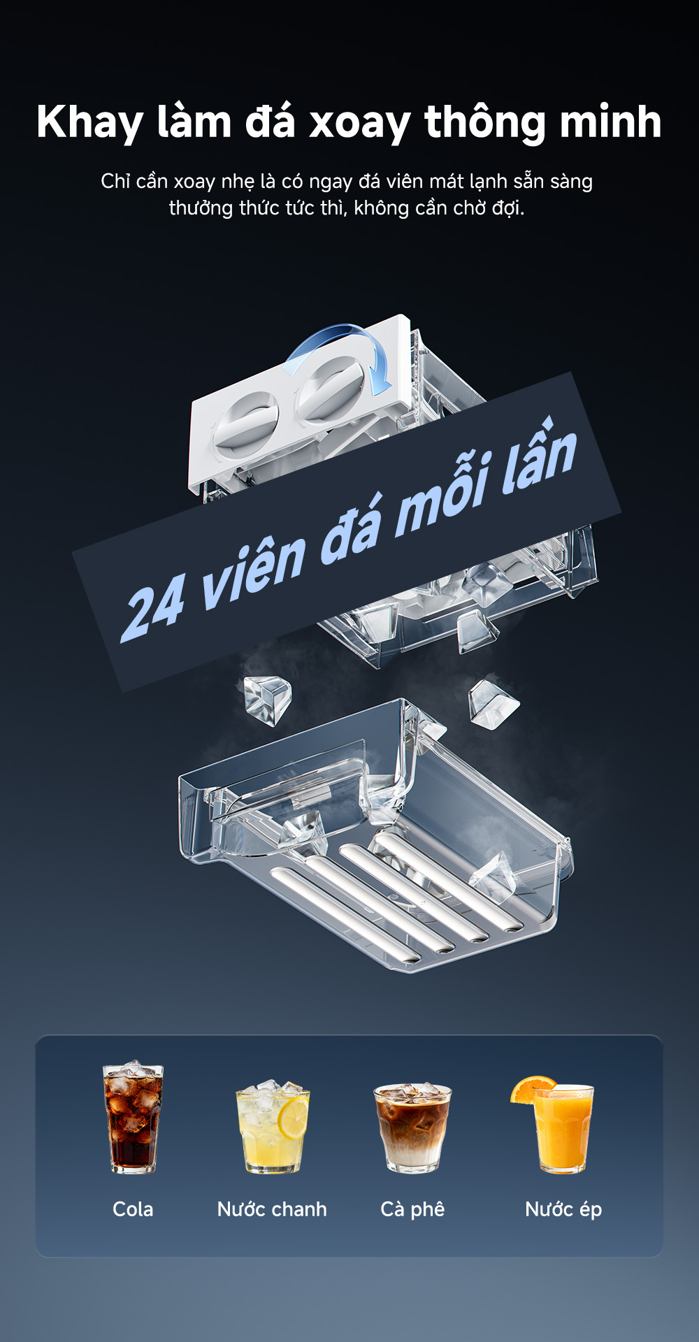 - Khay đá di động tiện lợi