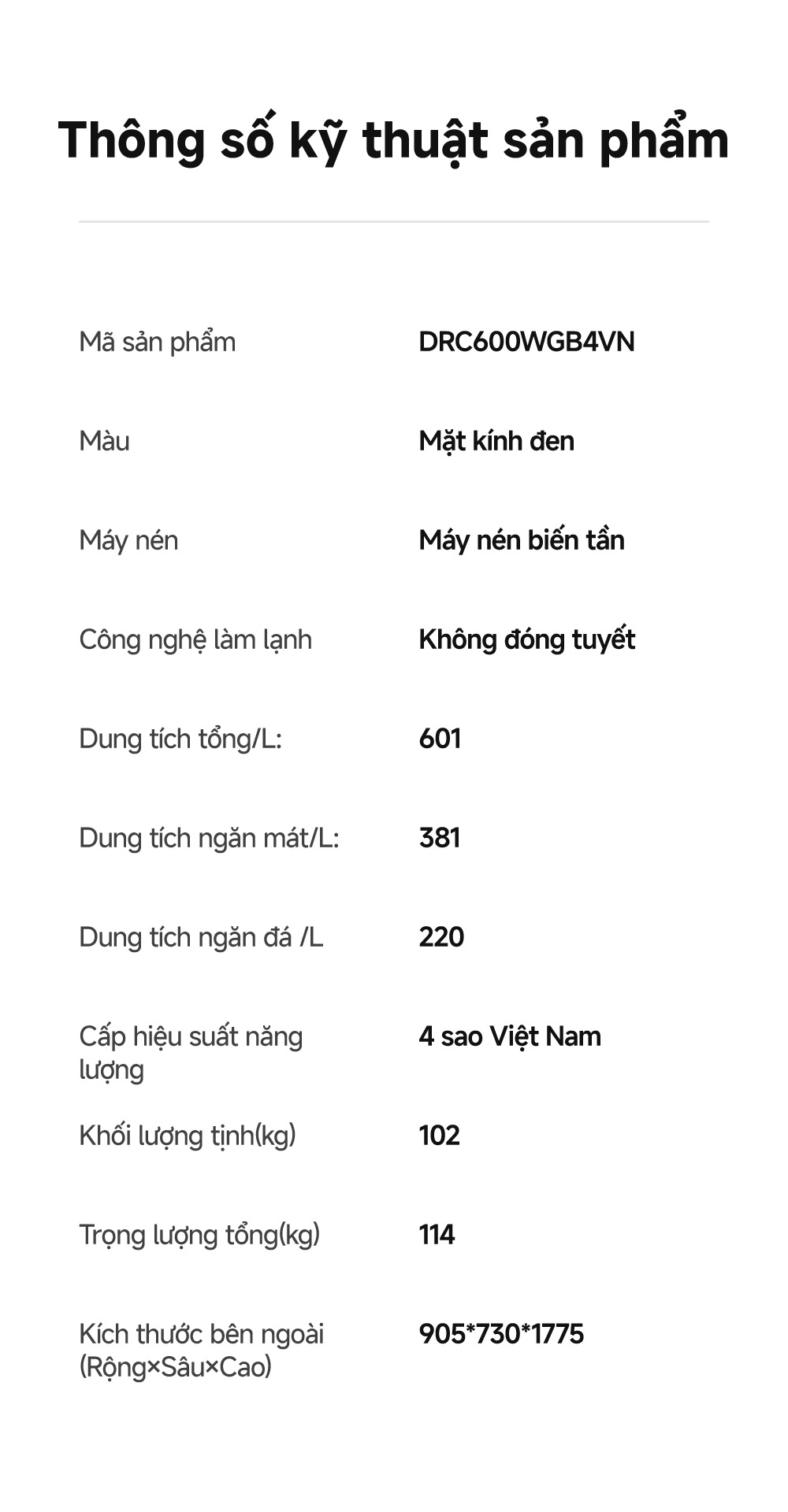 Thông Số Kỹ Thuật Tủ Lạnh Dreame C-Fresh 600L Refrigerator DRC600WGB4VN