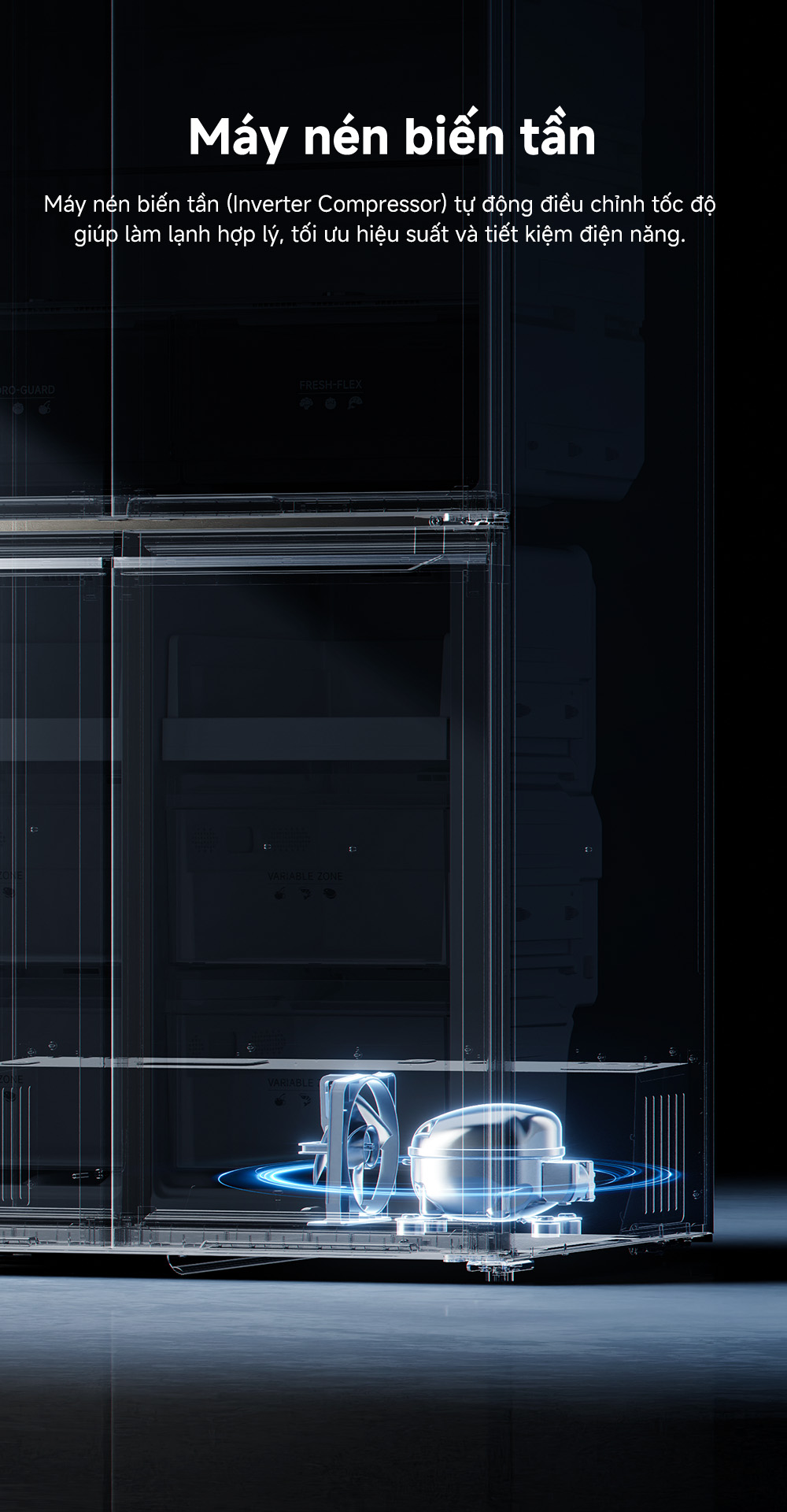 Nhờ đó, tủ lạnh luôn hoạt động êm ái và tiết kiệm chi phí điện năng hàng tháng.