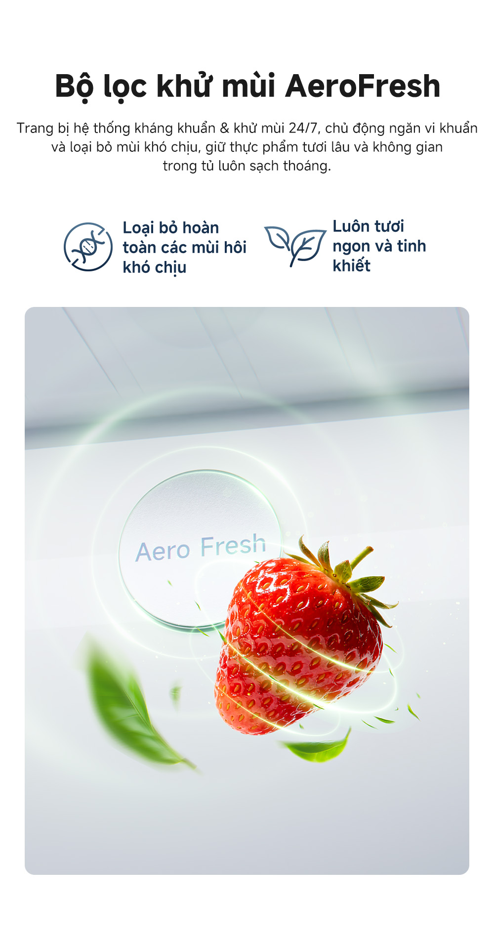Song song với hệ thống kháng khuẩn, tủ lạnh còn tích hợp bộ lọc khử mùi hoạt động độc lập.