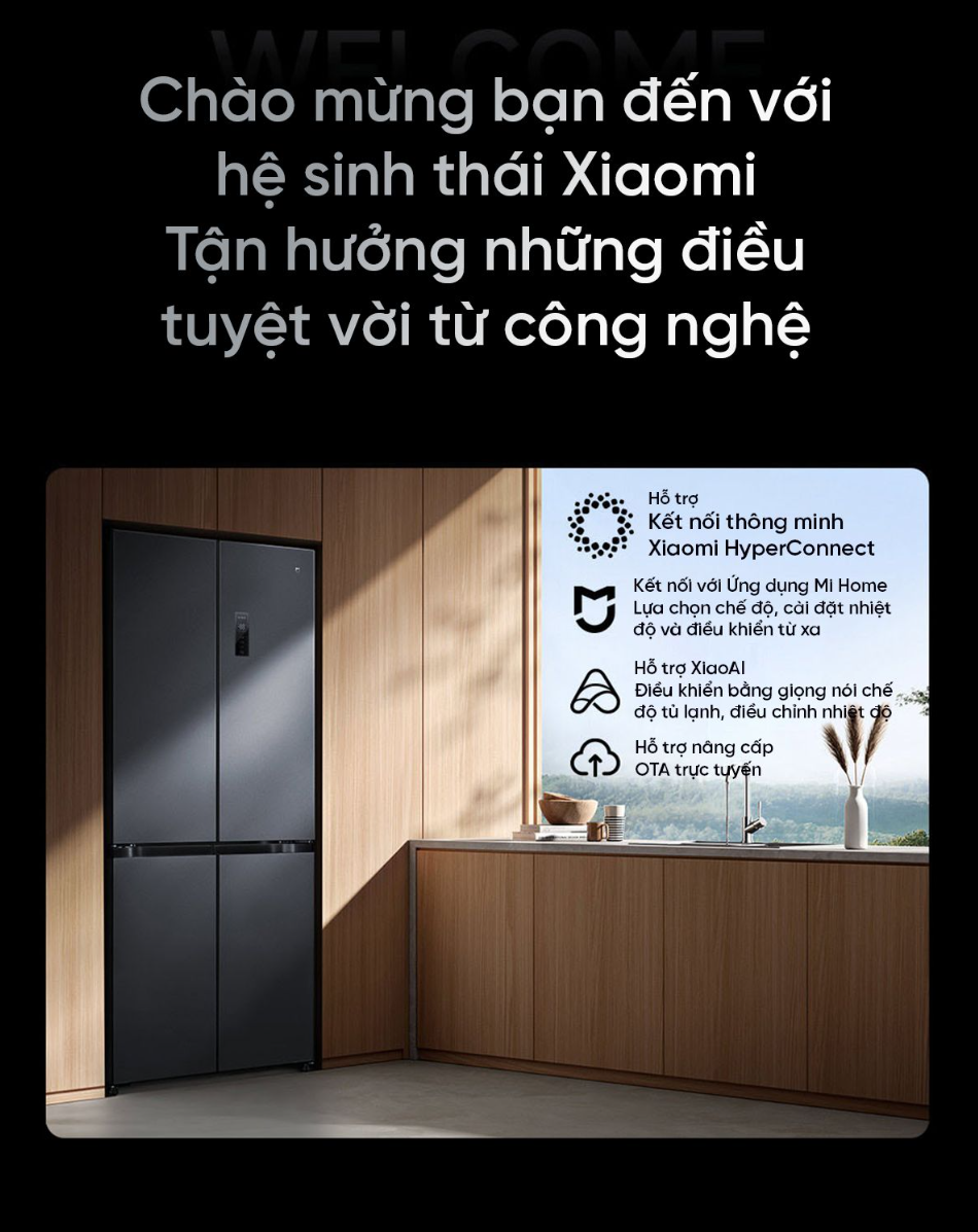 Tủ lạnh Mijia 513L Pro là một phần của hệ sinh thái thông minh Xiaomi, mang lại trải nghiệm kết nối và điều khiển từ xa tiện lợi: