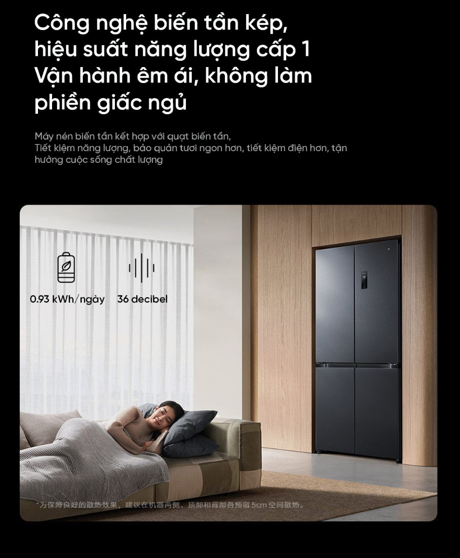 - Chuyển Đổi Tần Số Kép: Sử dụng máy nén và quạt tần số thay đổi, tủ lạnh này đạt hiệu suất năng lượng cao, chỉ tiêu thụ 0,93kWh/ngày.