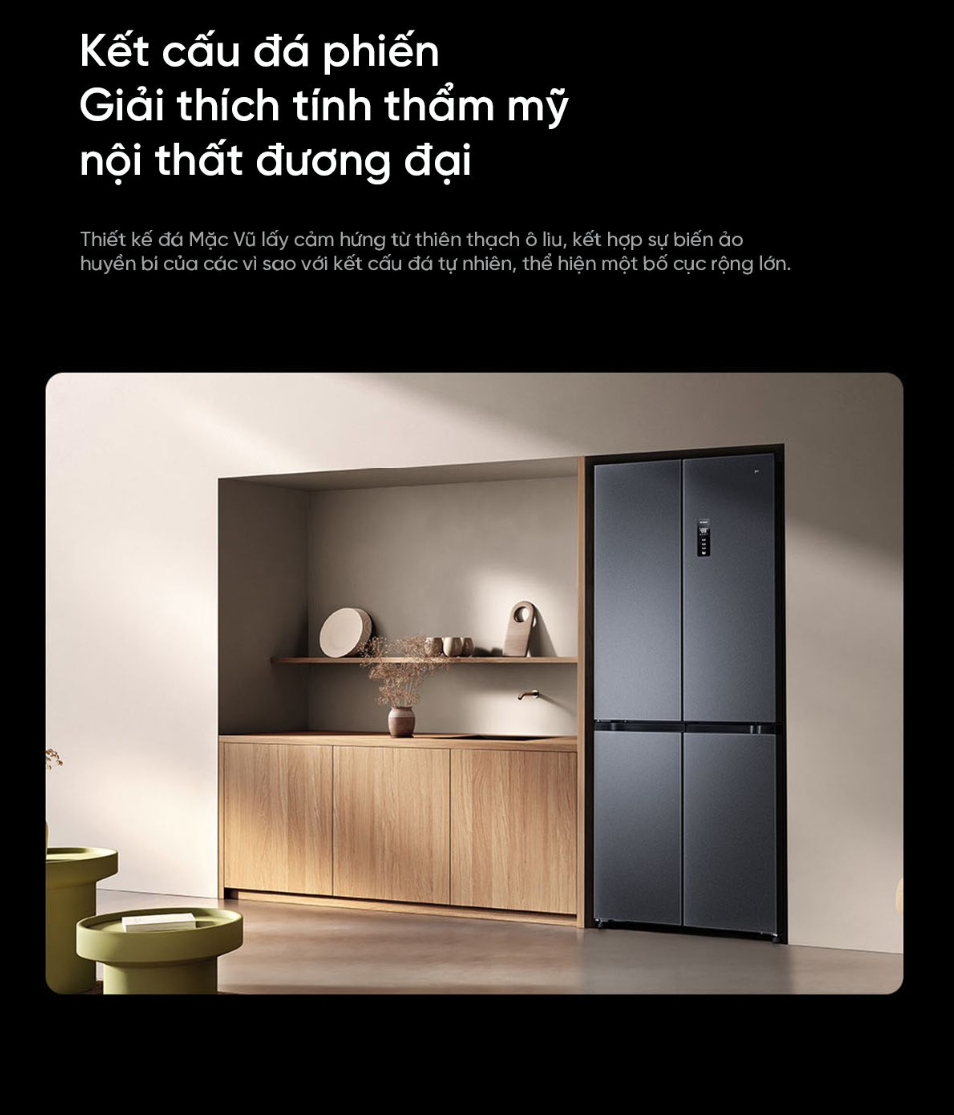 Tủ lạnh Mijia 513L Pro không chỉ ấn tượng về tính năng mà còn nổi bật về thẩm mỹ với kết cấu đá phiến, mang lại nét đẹp hiện đại và tinh tế cho không gian nhà bạn.