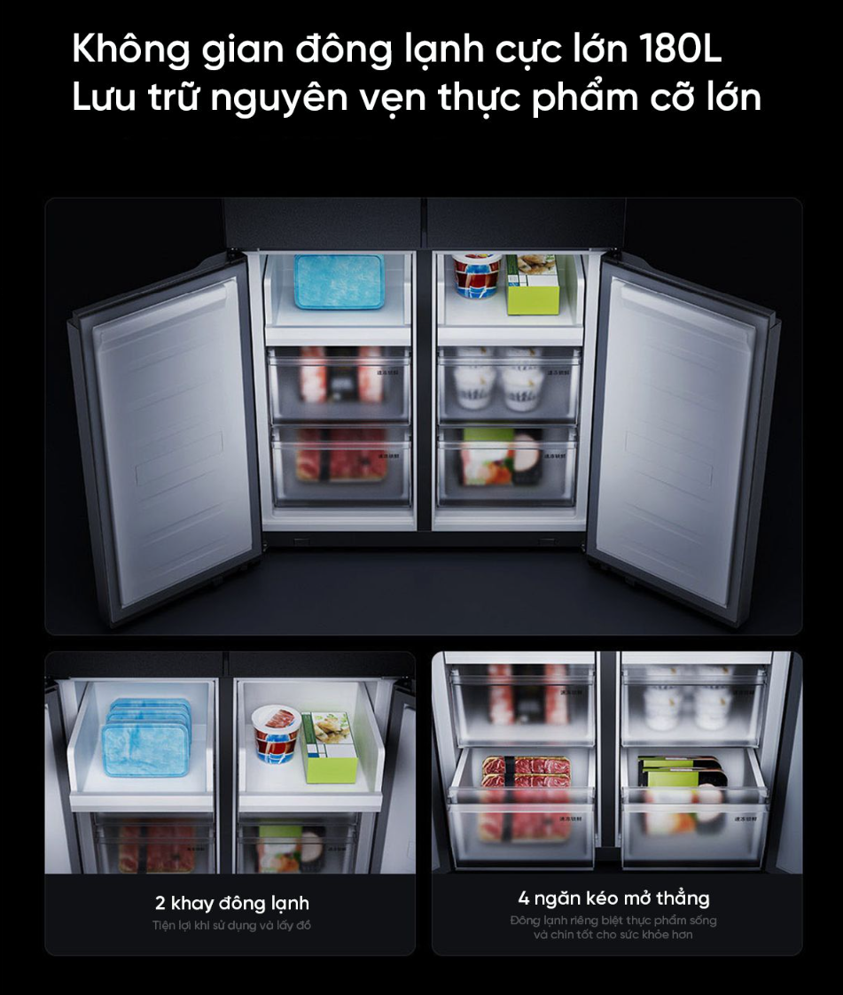 Ngăn đông 180L của tủ lạnh Xiaomi Mijia 513L Pro cung cấp không gian lưu trữ rộng rãi và linh hoạt: