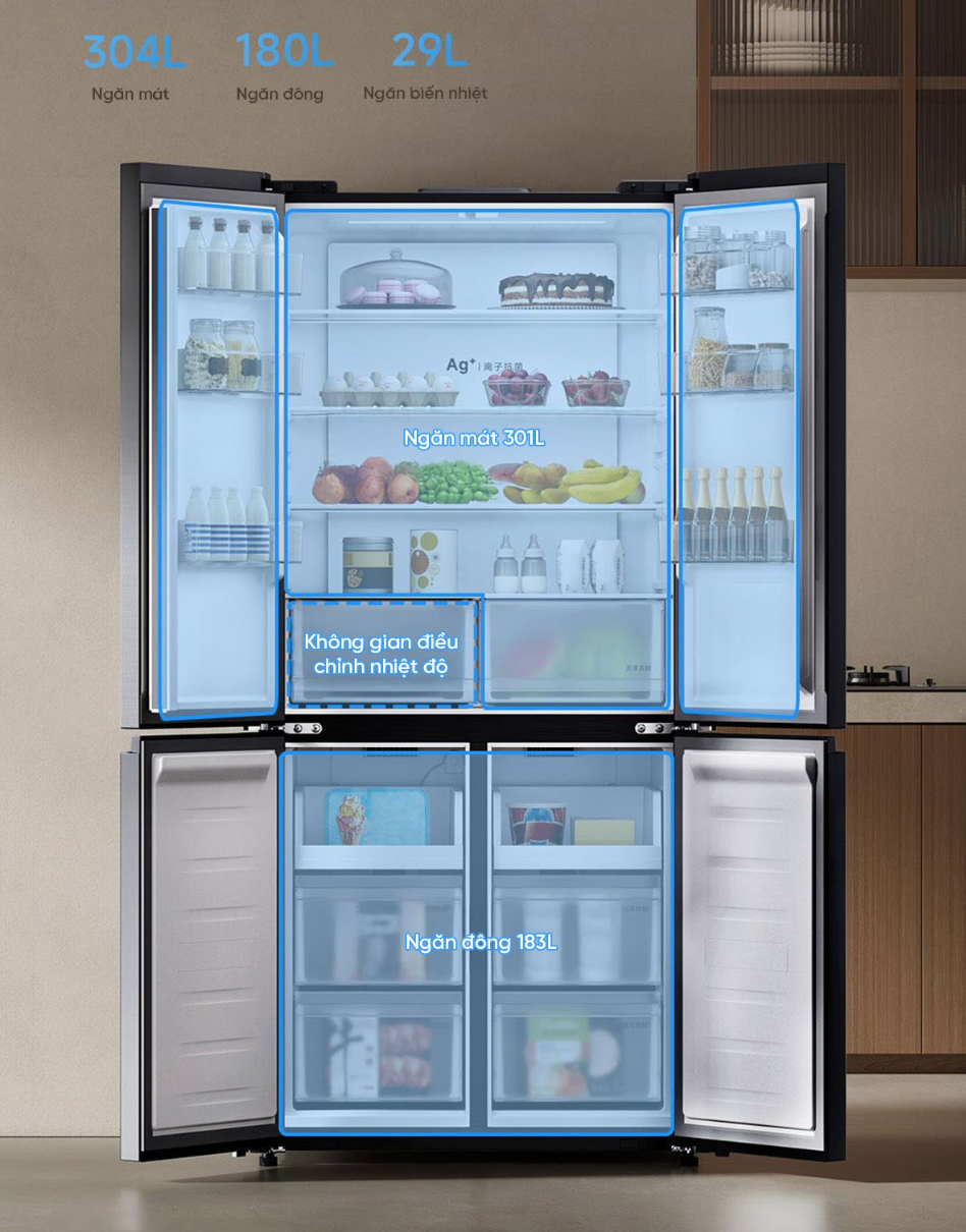 - Không Gian Nhiệt Độ Có Thể Điều Chỉnh: Cho phép tùy chỉnh nhiệt độ cho từng loại thực phẩm, đảm bảo bảo quản tối ưu.