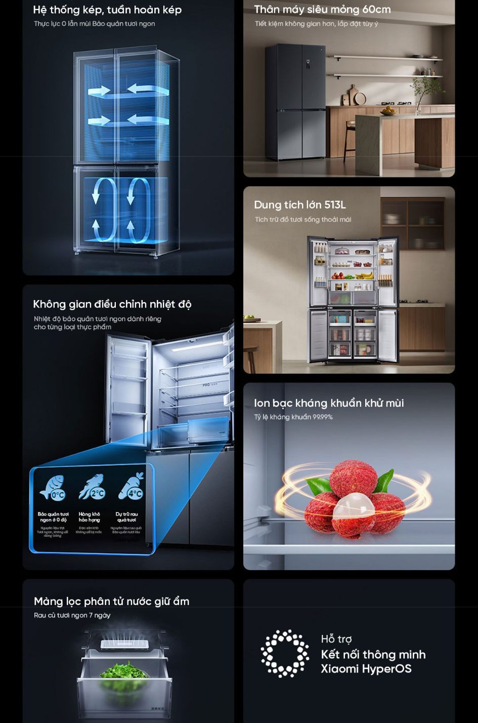 Tủ Lạnh 4 Cánh Xiaomi Mijia 513L & 513L Pro Có Ngăn Đông Mềm