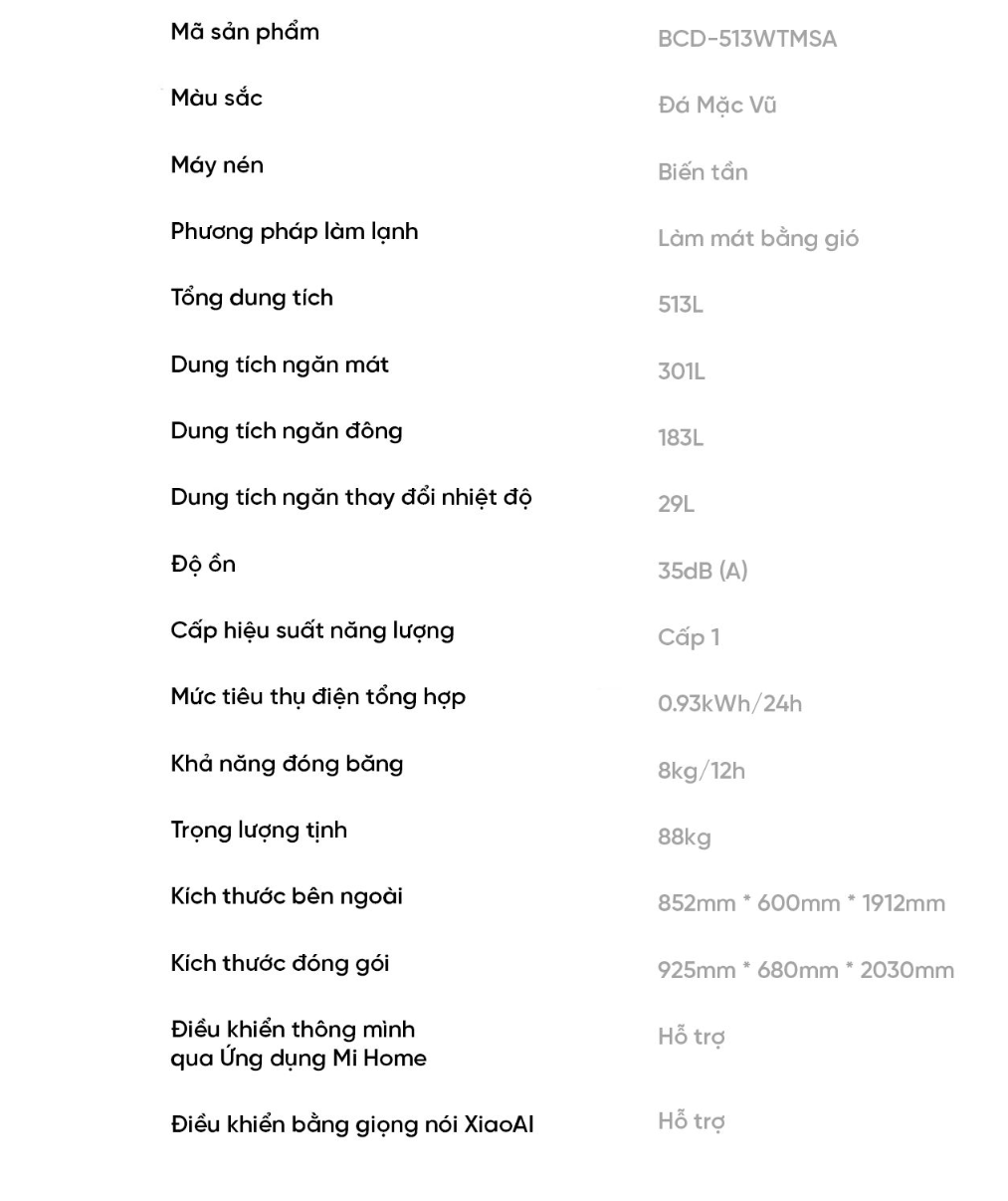 Tủ lạnh Mijia 513L Pro có dung tích ấn tượng lên đến 513 lít, đáp ứng nhu cầu lưu trữ thực phẩm cho cả gia đình. Nó bao gồm: