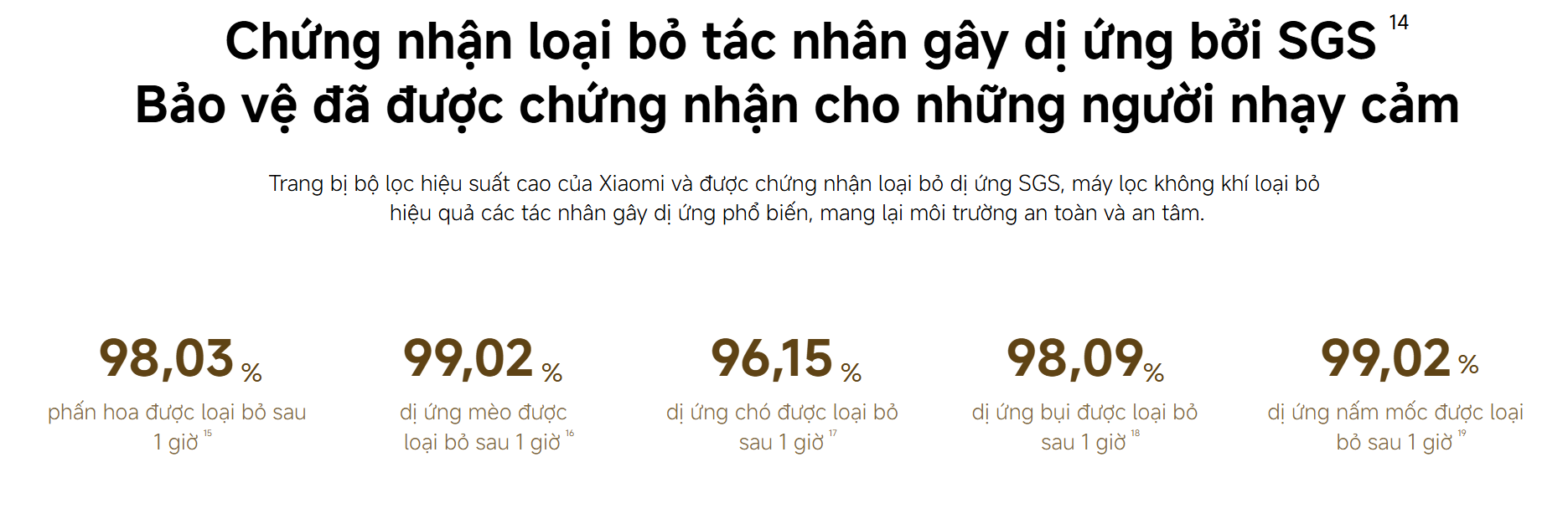 Chứng nhận SGS – Loại bỏ tác nhân gây dị ứng hiệu quả