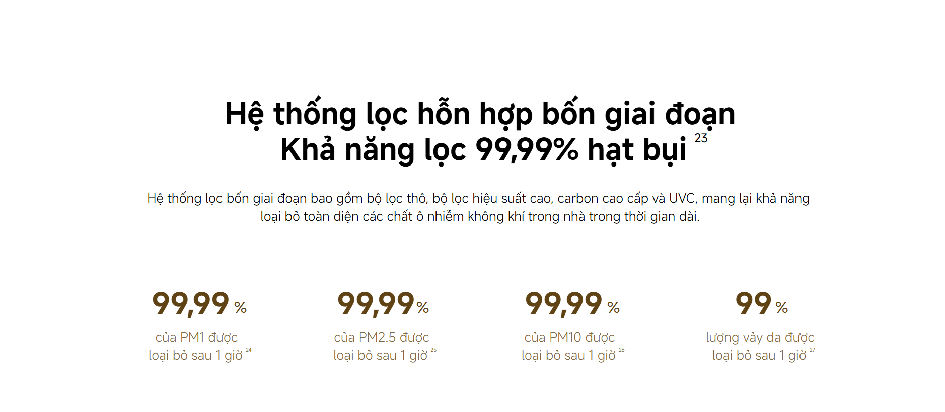 Hệ thống lọc bốn giai đoạn – Lọc sạch đến 99,99% hạt bụi mịn