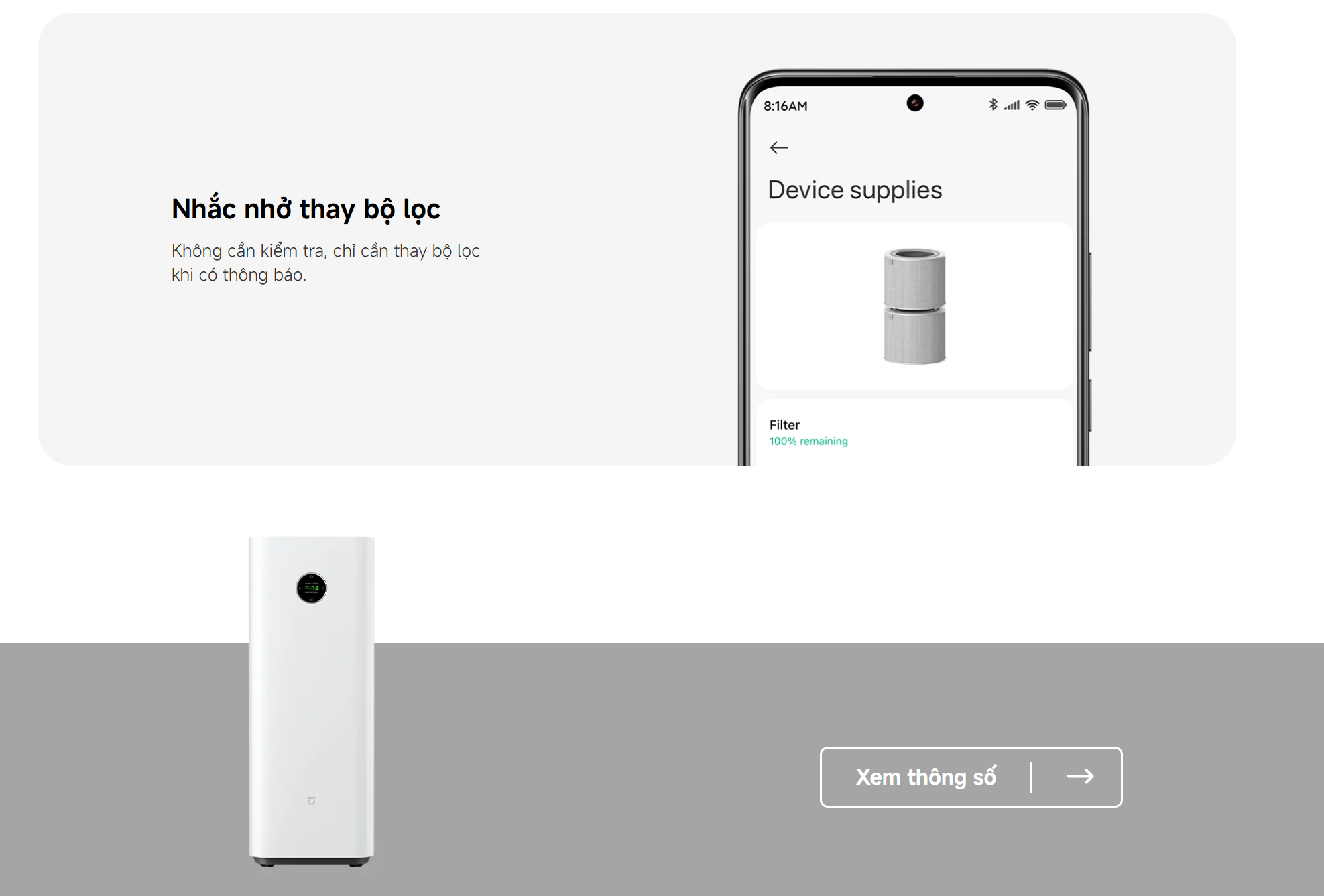 Tên sản phẩm  Máy lọc không khí thông minh Xiaomi Air Purifier Max